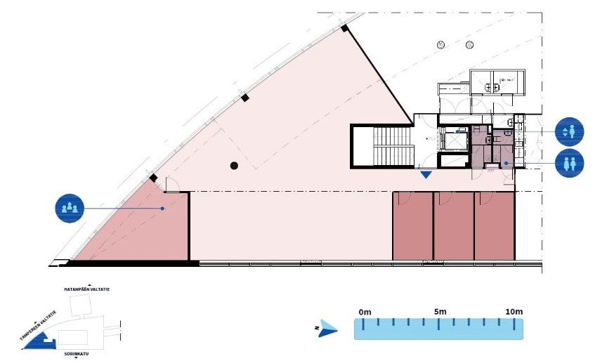 Tunnistettava kaareva toimistotalo sijaitsee hyvällä paikalla Tampereen Ratinassa uuden Nokia Arenan läheisyydessä. Kulkuyhteydet ovat autoilijoille erinomaiset, sillä vierestä kulkevat Hatanpään valtatie ja Tampereen valtatie. Ratikka- tai bussipysäkkikään ei ole kaukana ja Tampereen keskustaan tai rautatieasemalle kävelet reilussa kymmenessä minuutissa.