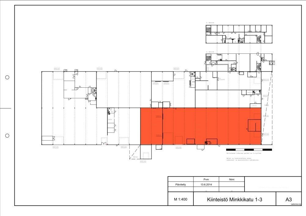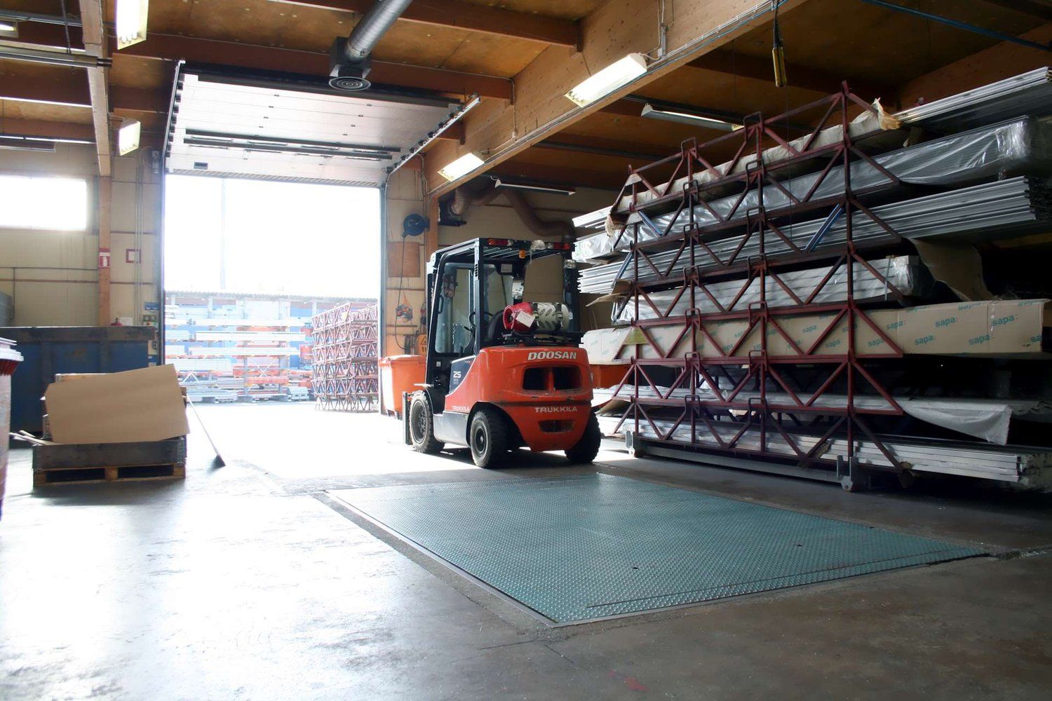 Vuokrataan 840 m²:n (600 m²+240 m²) kokoinen varastotila / tuotantotila. Tilojen välillä liukuovi. Tilan vapaa korkeus on 4,2 m, lattia on betonia. Nosto-oven mitat: korkeus 3,83 m ja leveys 5 m. Tilassa on wc ja taukotila. Ei lastauslaituria. Piha-alue on aidattu.