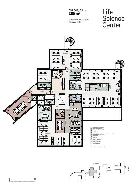 Vuokrattavana 5. kerroksen 850 m2 toimistotila Life Science Centerin B-talosta.