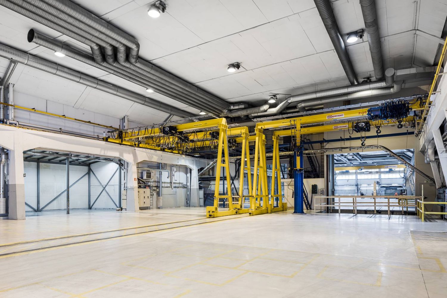 Vuokrattava teollis-tuotannollinen tila, jonka läheisyydessä sisäyhteydellä on vuokrattavissa myös toimistotilaa. Tähän tilaan on maatason nosto-ovi ja tilassa on merkittävästi nostinkapasiteettia. Tilan maksimikorkeus on noin 9.6 metriä.