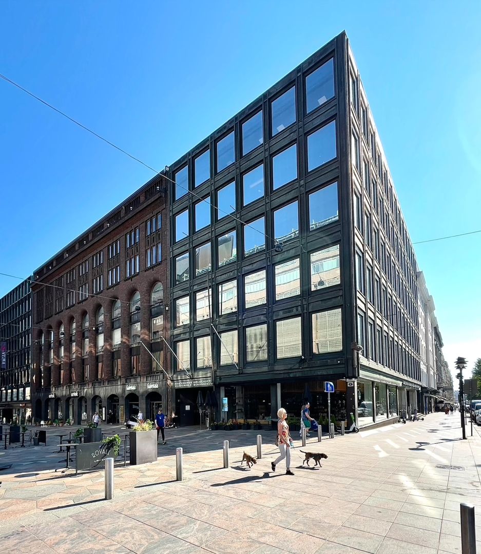 Kirjatalo. Alvar Aallon 60-luvulla suunnittelema rakennus sijaitsee Helsingin kaupallisen keskustan ytimessä Keskuskadun ja Pohjoisesplanadin kulmassa, Stockmannin tavarataloa vastapäätä. Rakennuksessa on kolmikerroksinen, alun perin kirjakaupaksi suunniteltu osa, jonka kahdessa ensimmäisessä kerroksessa toimii edelleen Akateeminen Kirjakauppa sekä Starbucks kahvila ja kolmannessa kerroksessa Co-working tila. Osalle tätä kolmikerroksista rakennusta on toteutettu kuusikerroksinen toimisto-osa, jossa toimistotiloja on kolmannesta kerroksesta ylöspäin. Toimisto-osaan kulku tapahtuu kävelykaduksi toteutetun Keskuskadun sisäänkäyntiaulan kautta, josta toimistokerrokseen pääsee kolmella asiakashissillä.