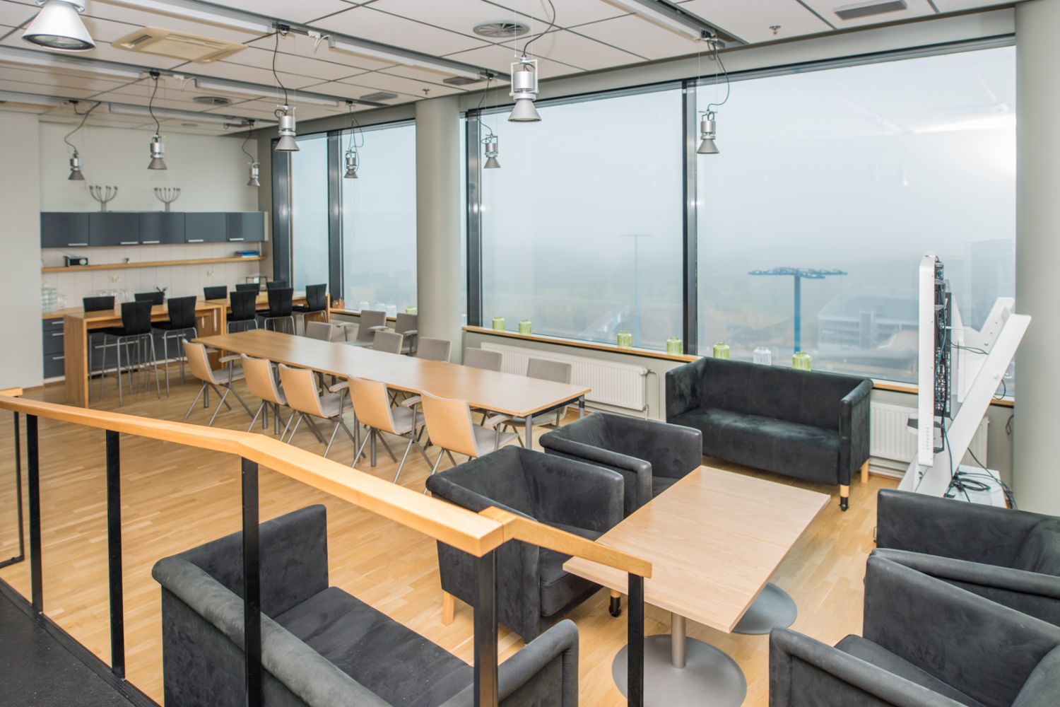 Vuokrattavana toimistotilaa, eri kokoisia huoneita, neukkari, keittiö. Mahdollisuus yhdistää valmiilla sisäillä portailla 1. kerrokseen suurimmillaan n. 1100m2 kokonaisuudeksi. Pohjakuva esimerkkikerroksen tilasovituksesta. Sisävalokuvat ovat esimerkkejä kiinteistön tiloista.