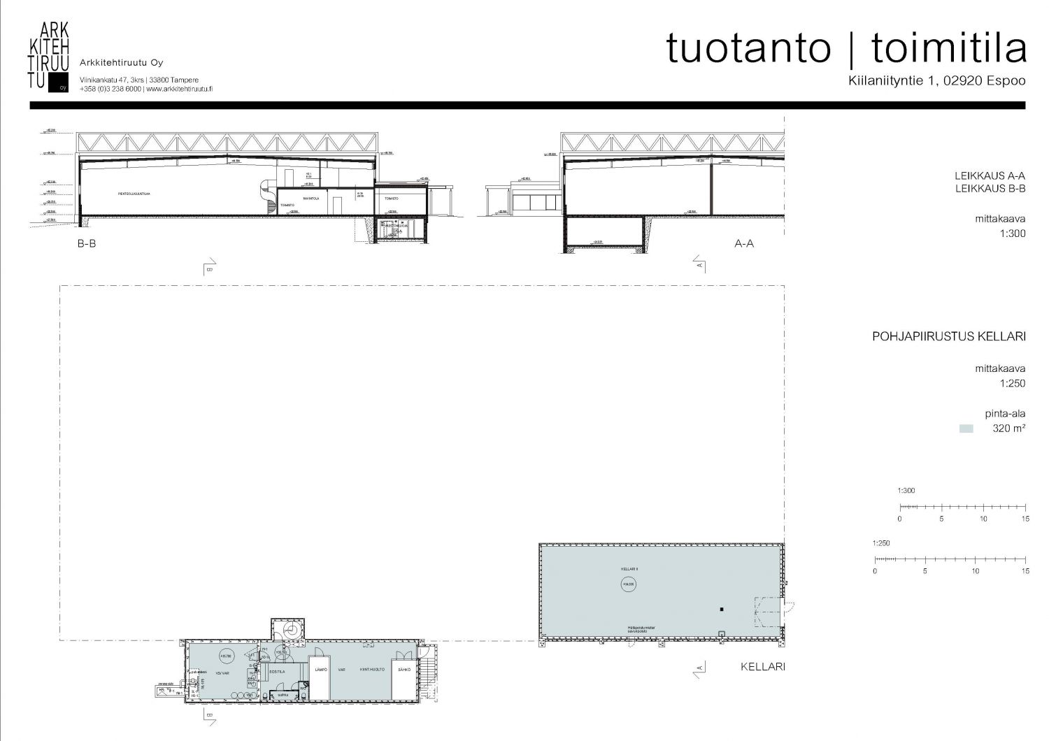- Autotalli/erillisvarasto kellarikerroksessa n. 236 m2