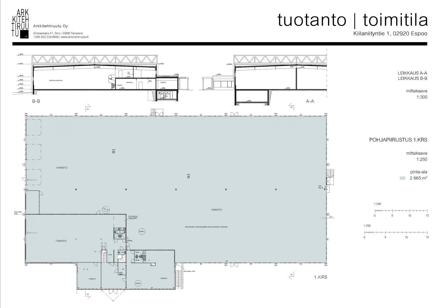 - Toimistotilat 1. ja 2. kerroksessa n. 638 m2