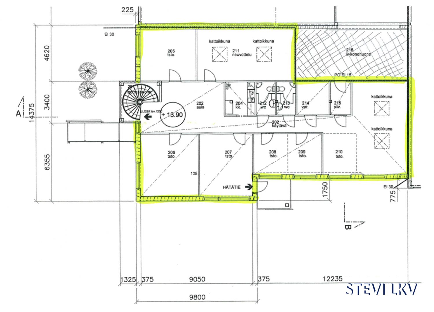 Heti vapaana hyväkuntoinen toimistotilaa 275m2 rakennuksen 2.kerroksesta.