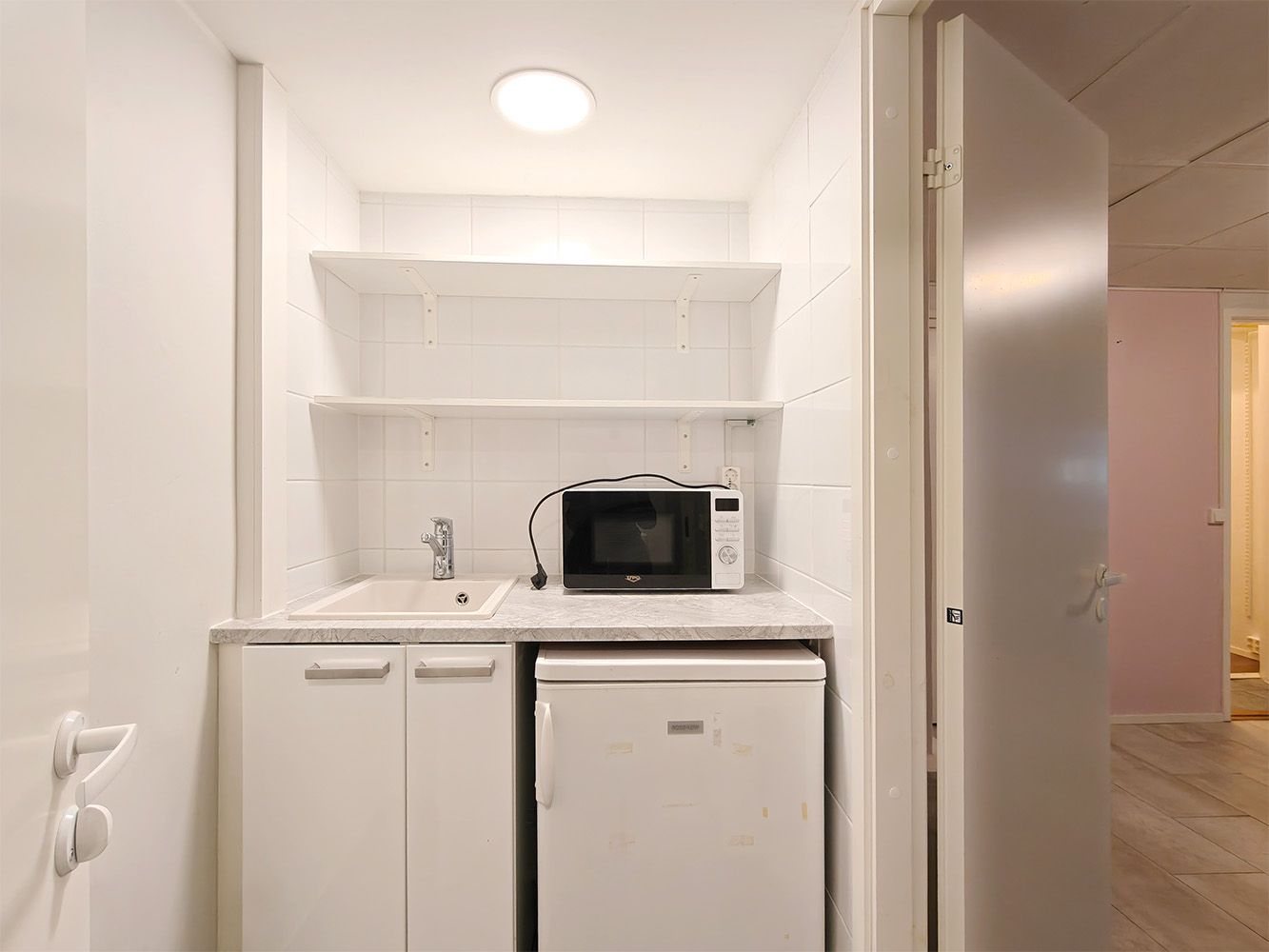 Kunto, varusteet ja palvelut: Hyvä kunto, avotilaa, kaksi huonetta, minikeittiö, pesupisteet, wc, keskustan palvelut lähellä