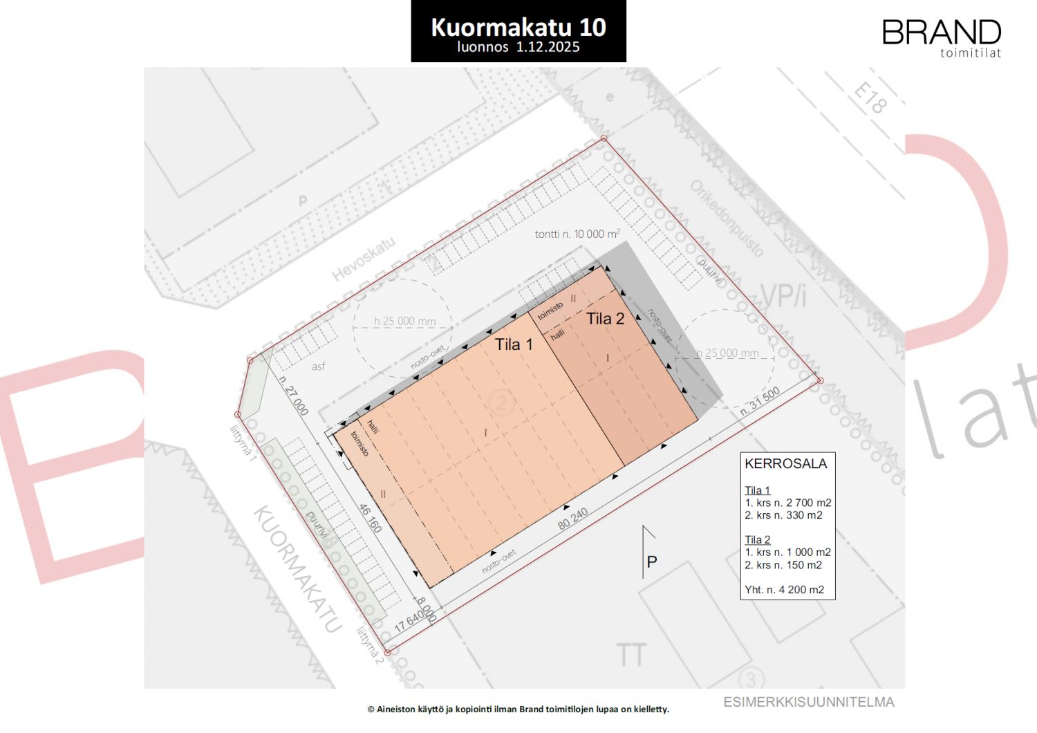 - Pinta-ala n. 4200 m², jaettavissa 1–3 käyttäjän kesken