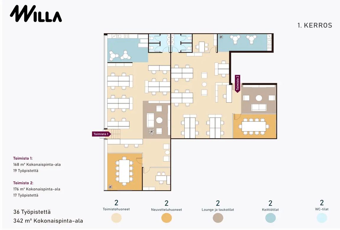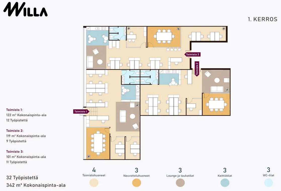 Ennakkomarkkinoinnissa modernit ja muuntojoustavat toimistotilat Kauppakeskus Willan Prismatasolla. Tarjolla tilakokoja 100-340 m2, ja ratkaisut suunnitellaan vuokralaisen tarpeiden ja toiveiden mukaan. Toimistoihin on käynti joko kauppakeskuksen sisältä tai ulkokautta. Erinomainen sijainti lähellä rautatieasemaa ja hyvien julkisten liikenneyhteyksien varrella.