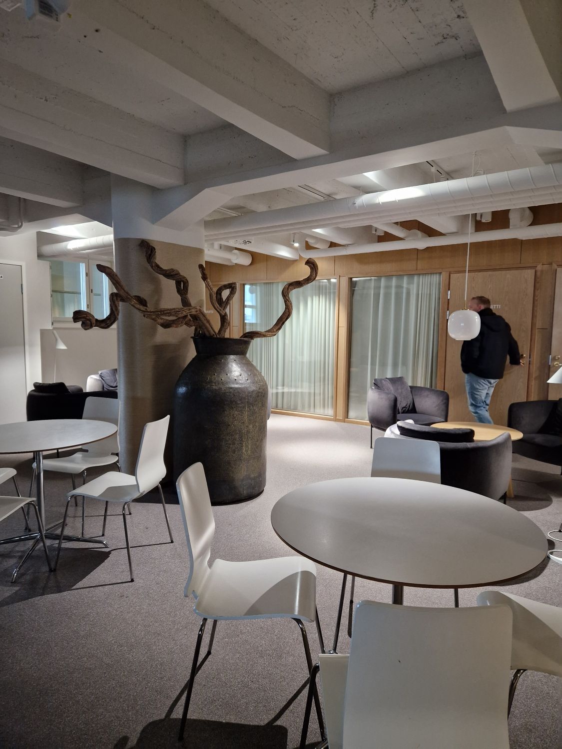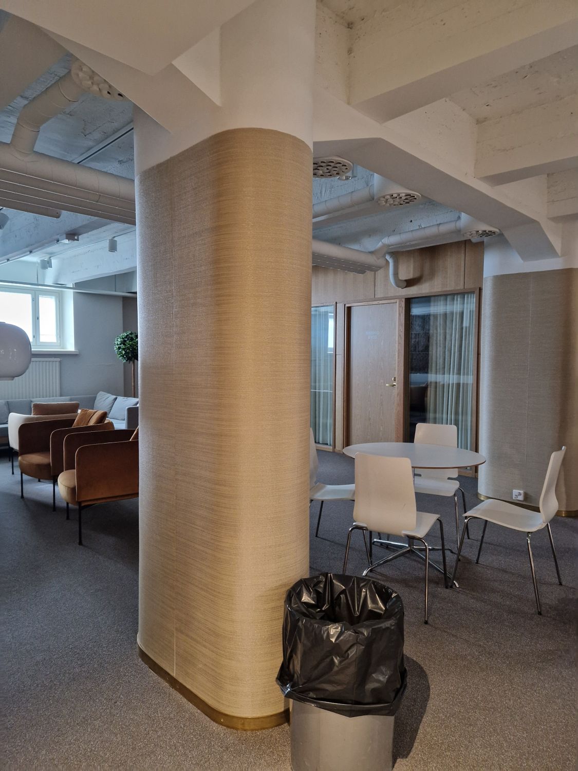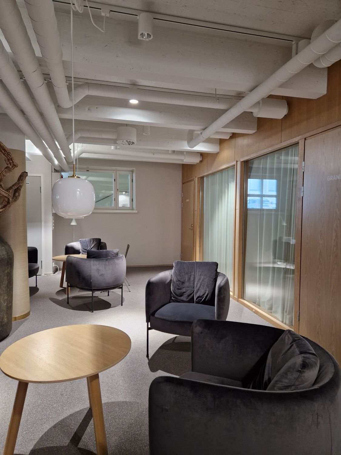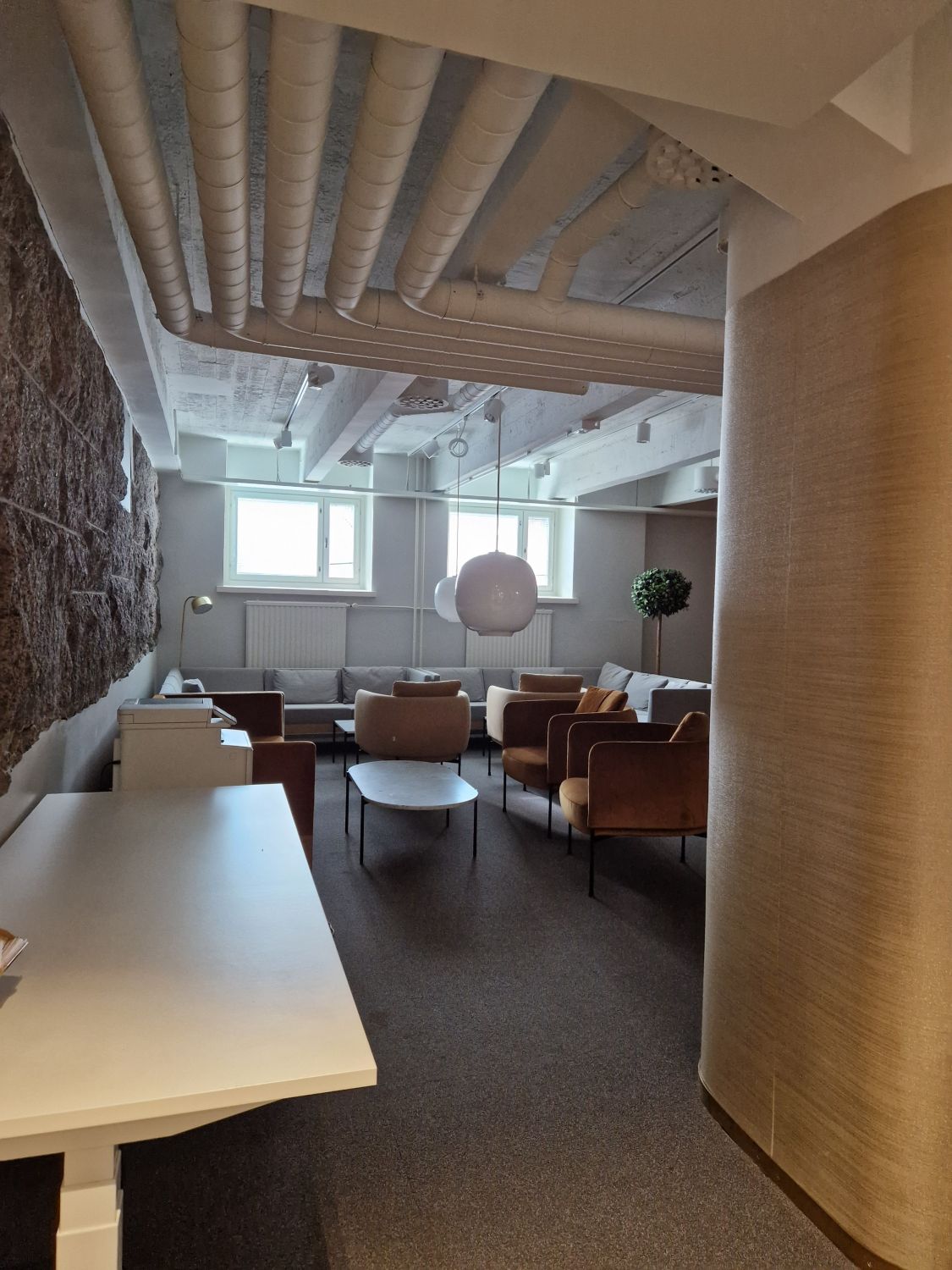 Lattiapinnat ovat tekstiilipalalaattaa, toimistohuoneet ovat lasiseinillä. Sisääntulon yhteydessä aulatila, neukkaritila sekä 2 kpl wc-tiloja.