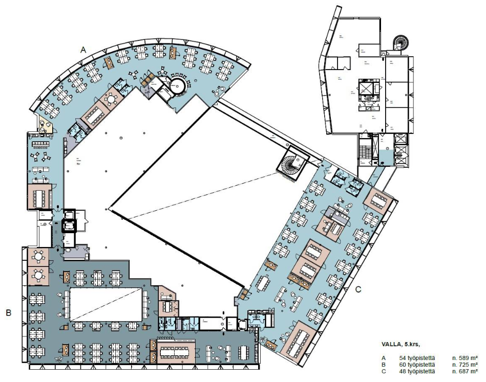 Helsingin Ruoholahdessa sijaitseva Valla tarjoaa muunneltavaa toimitilaa erikokoisille yrityksille. Vapaana Atruimin tilat 2.-5. kerroksessa á n. 2800 m2 jaettavissa useaan eri kokoluokkaan sekä Tornin kerrokset 4., 8-10. sekä 14. á 380 m2 jaettavissa 256 m2/124 m2. Talossa on huippuluokan auditorio, aulapalvelu, ravintola- ja cateringpalvelut, moderni neuvottelukeskus, sauna-/edustustilat talon ylimmässä kerroksessa, kuntosali, ym. Kiinteistön tilat tarjoavat erinomaiset puitteet kohtaamiseen ja keskittymiseen. Vallan Atrium ja Torni pitävät sisällään tilat, joissa yritys- ja työhyvinvointi kasvavat ja kehittyvät. Ota yhteyttä ja sovi esittely, vuokrauspalvelumme on tilanhakijoille maksuton.