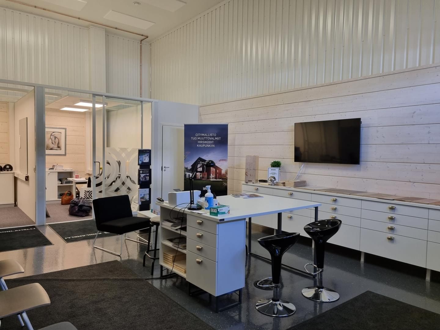 Kyseessä on liiketilakäyttöön tarkoitettu varasto/toimisto/työtila. Tila on yhtenäinen kokonaisuus, joka koostuu kahdesta tilasta. Liiketila 1 on kooltaan 77,1 m2 ja liiketila 32 on kooltaan 117,1 m2. Kohteen muutostöitä tehdessä seinien eristeitä lisättiin. Ensimmäisen kerrokset on toteutettu esittelyyn, varastointiin ja työskentelyyn soveltuvaksi tilaksi (yhteensä 107 m2) ja yläkerrasta löytyy toimistokäyttöön soveltuvaa tilaa mikä on jaettu kahdeksi huoneeksi. Tiloista löytyy myös oma minikeittiö, suihku ja kaksi wc-tilaa.