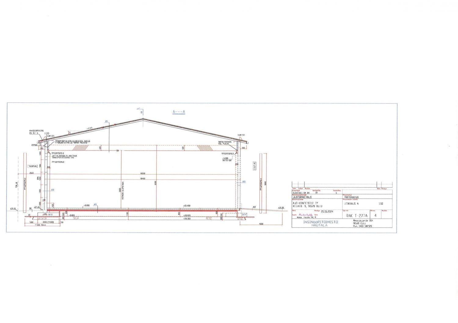 Hallin korkeus noin 5,8 metriä, leveys noin 4,5 metriä. Hallin nosto-oven korkeus noin 5,5 metriä ja nosto-ovessa myös käyntiovi halliin.