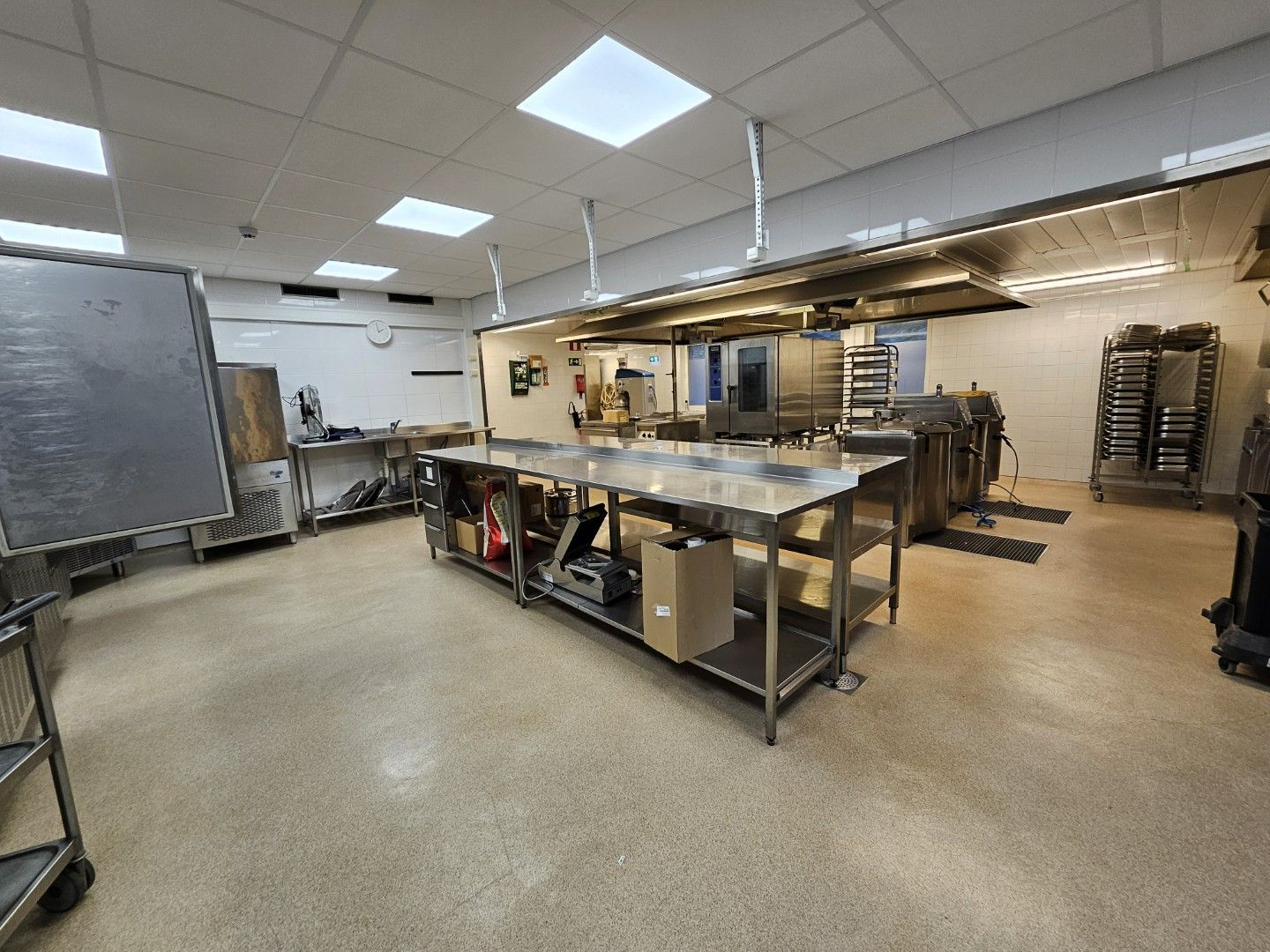 Valmistuskeittiön pinta-ala on n. 119 m² ja lisäksi käytössä on toimistotilat 4 kpl toimistohuoneita pinta-alaltaan yhteensä n. 61 m².