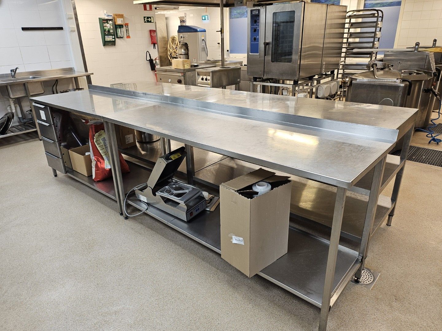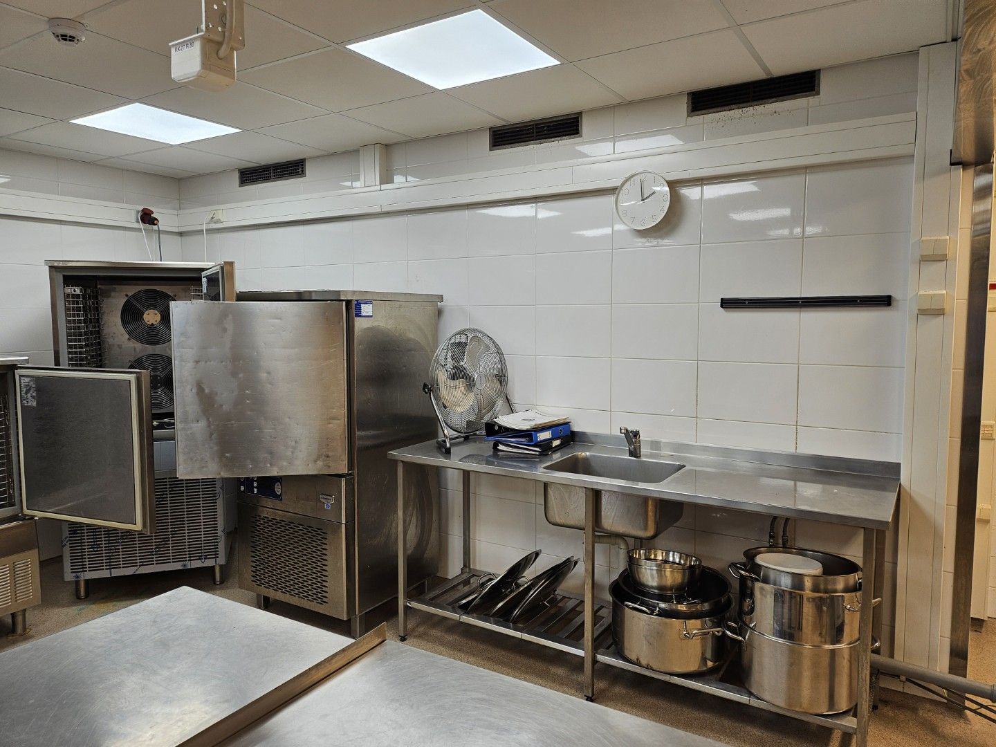 Valmistuskeittiössä on monipuoliset koneet ja laitteet, jotka ovat nykyisen toimijan ja ne ovat ostettavissa toimitilan vuokrauksen yhteydessä.