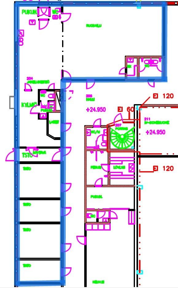 Vuokrattavana valmistuskeittiö ja toimistot yht. n. 204 m²