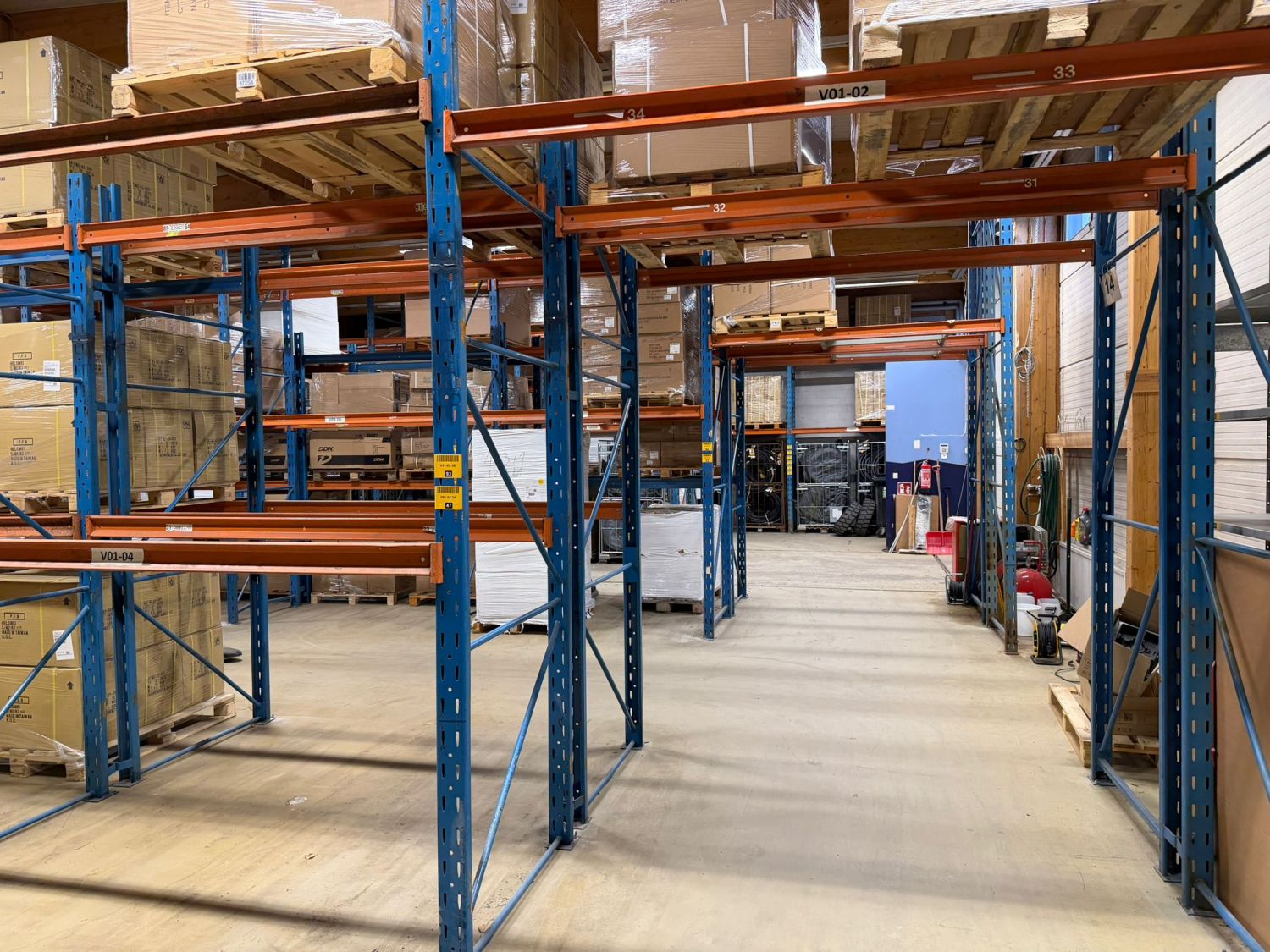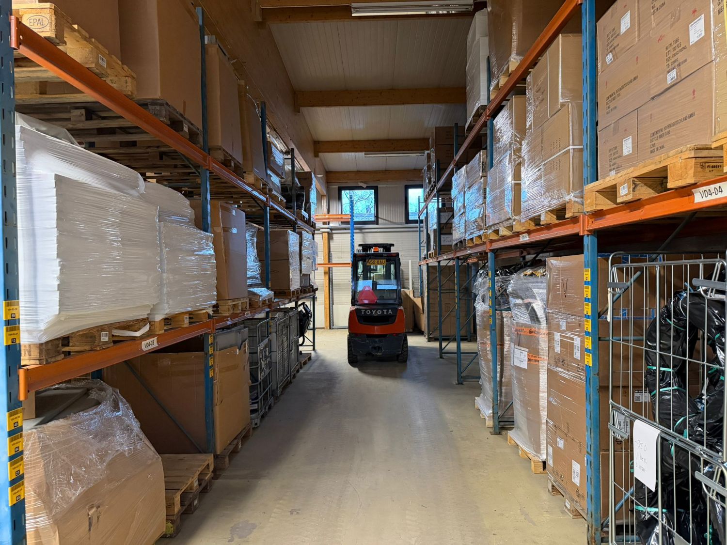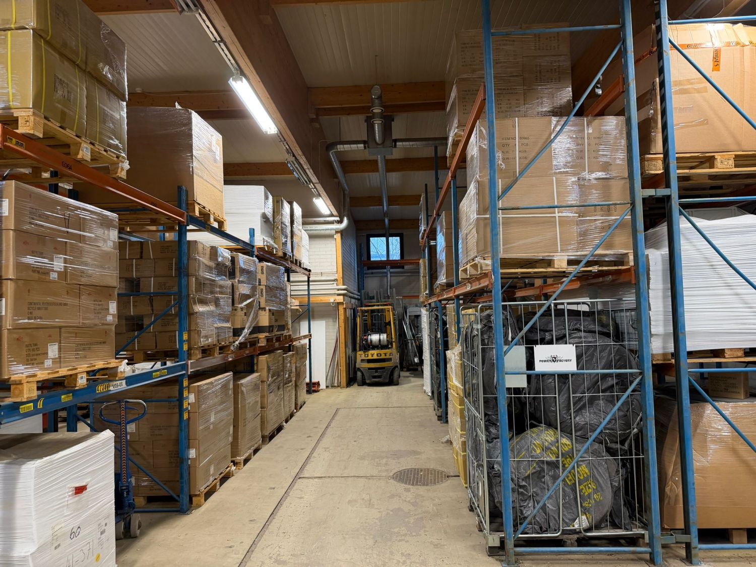 Nosto-ovellista hallitilaa, jossa valmiina varastohyllyt. Tilojen yhteydessä keittiö- ja wc.