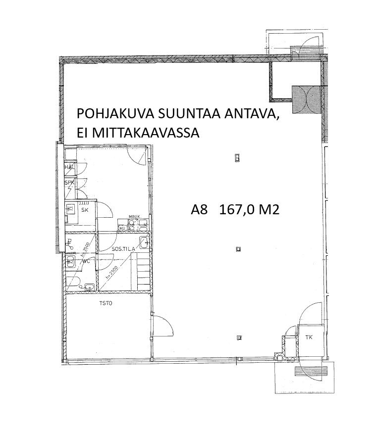 Tila soveltuu mm. työtilaksi, liiketilaksi tai toimistokäyttöön.