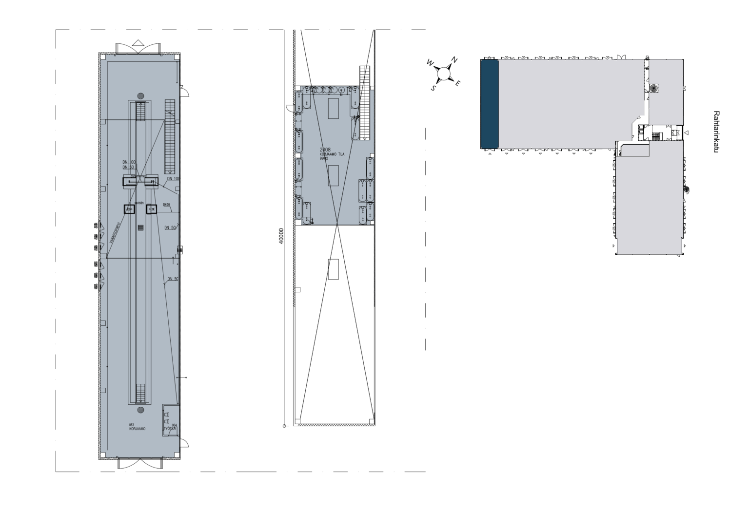 Läpiajettava noin 40 m pitkä halli