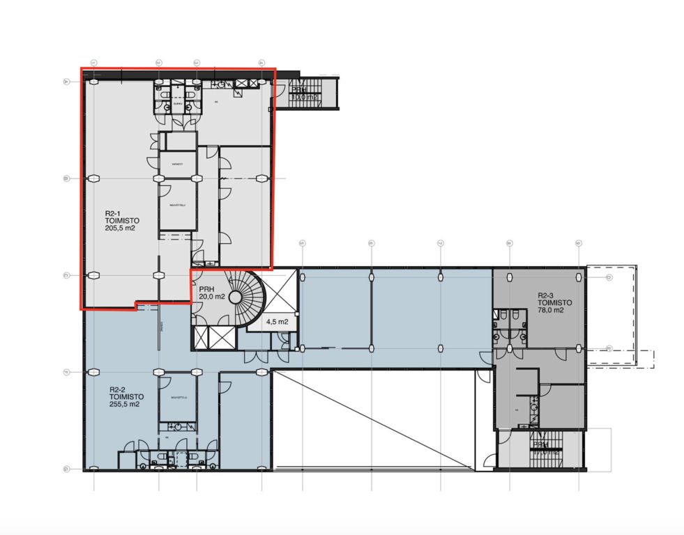 Tämä 205 m² toimistotila sijaitsee kiinteistön 2. kerroksessa.