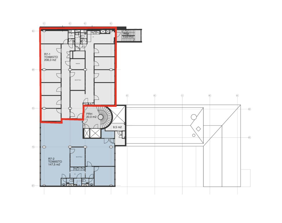 Tämä 206 m² toimistotila sijaitsee kiinteistön 4. kerroksessa.