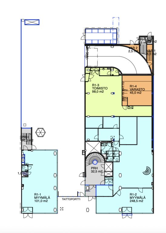 Tämä 98 m² toimistotila sijaitsee kiinteistön 1. kerroksessa.