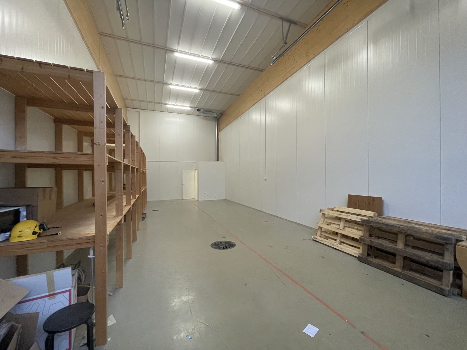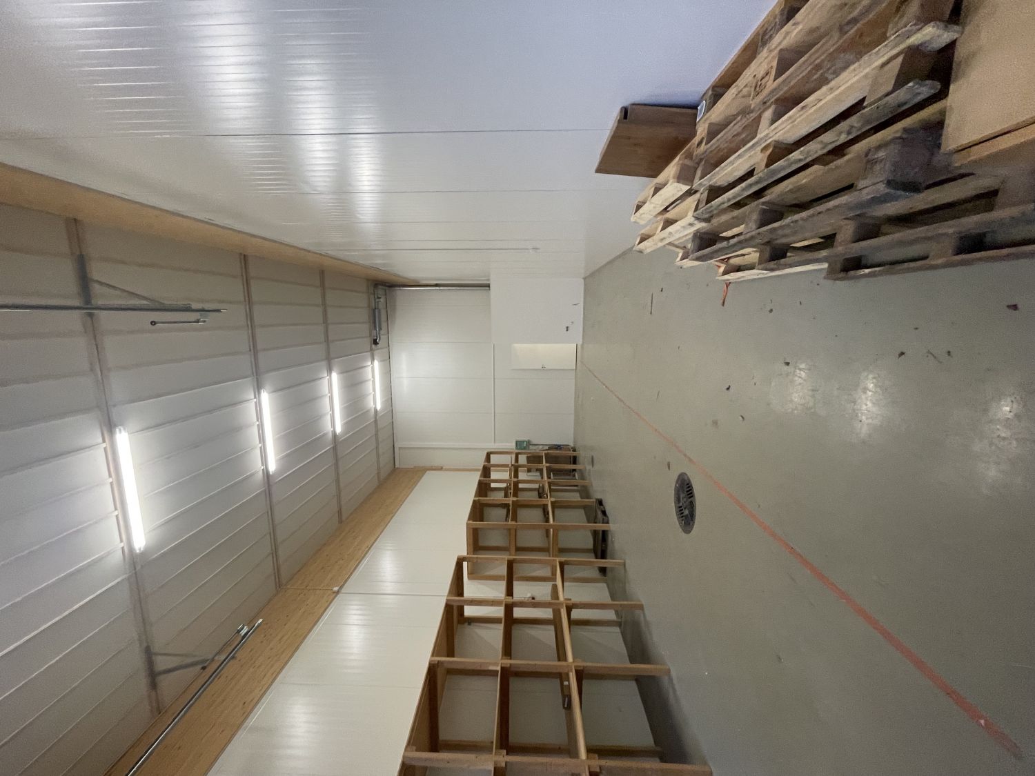 Tila on noin 14 metriä pitkä ja tilaan pääsee ajamaan korkeallakin ajoneuvolla. Tilassa on lattiakaivo.