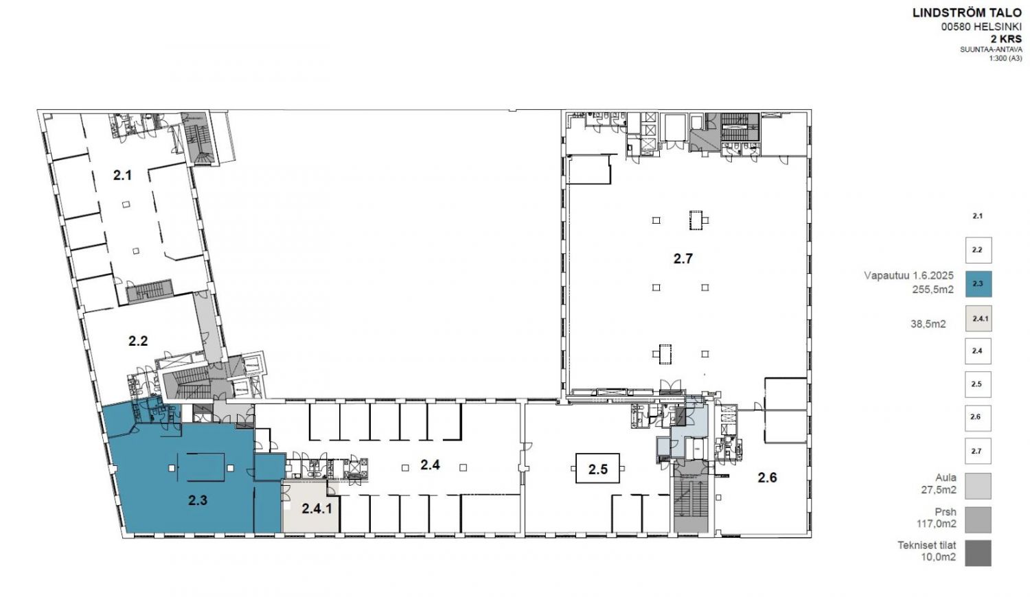 Vuokrataan toisen kerroksen jäähdytetty ja muuttovalmis 256 m² toimistotila Kalasatamasta. Tämä korkea tila koostuu avotilasta sekä muutamasta työhuoneesta. Tila voidaa laajentaa olemaan 295 m².
