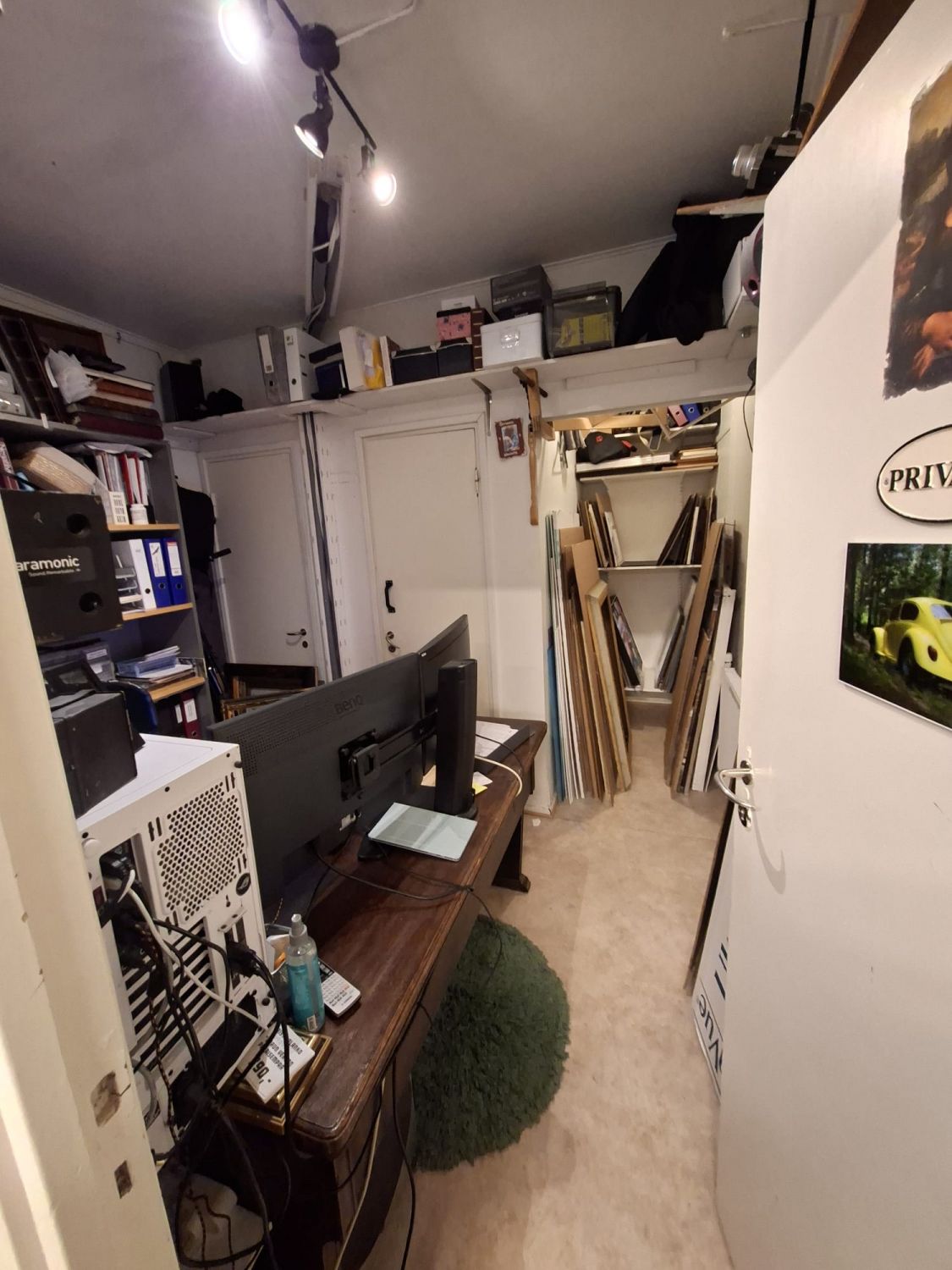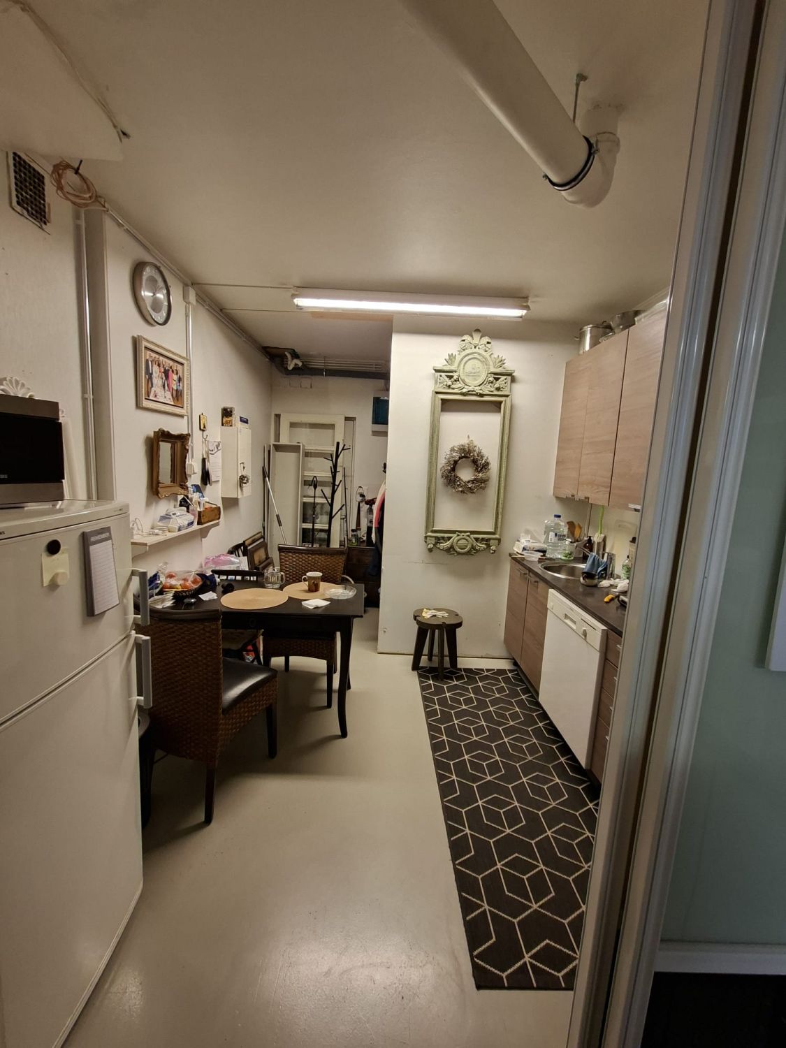 Nykyiseen tilaan on jo valmiiksi kaksi sisäänkäyntiä, lisäämällä tilaan väliseinän, saadaan tila jaettua.