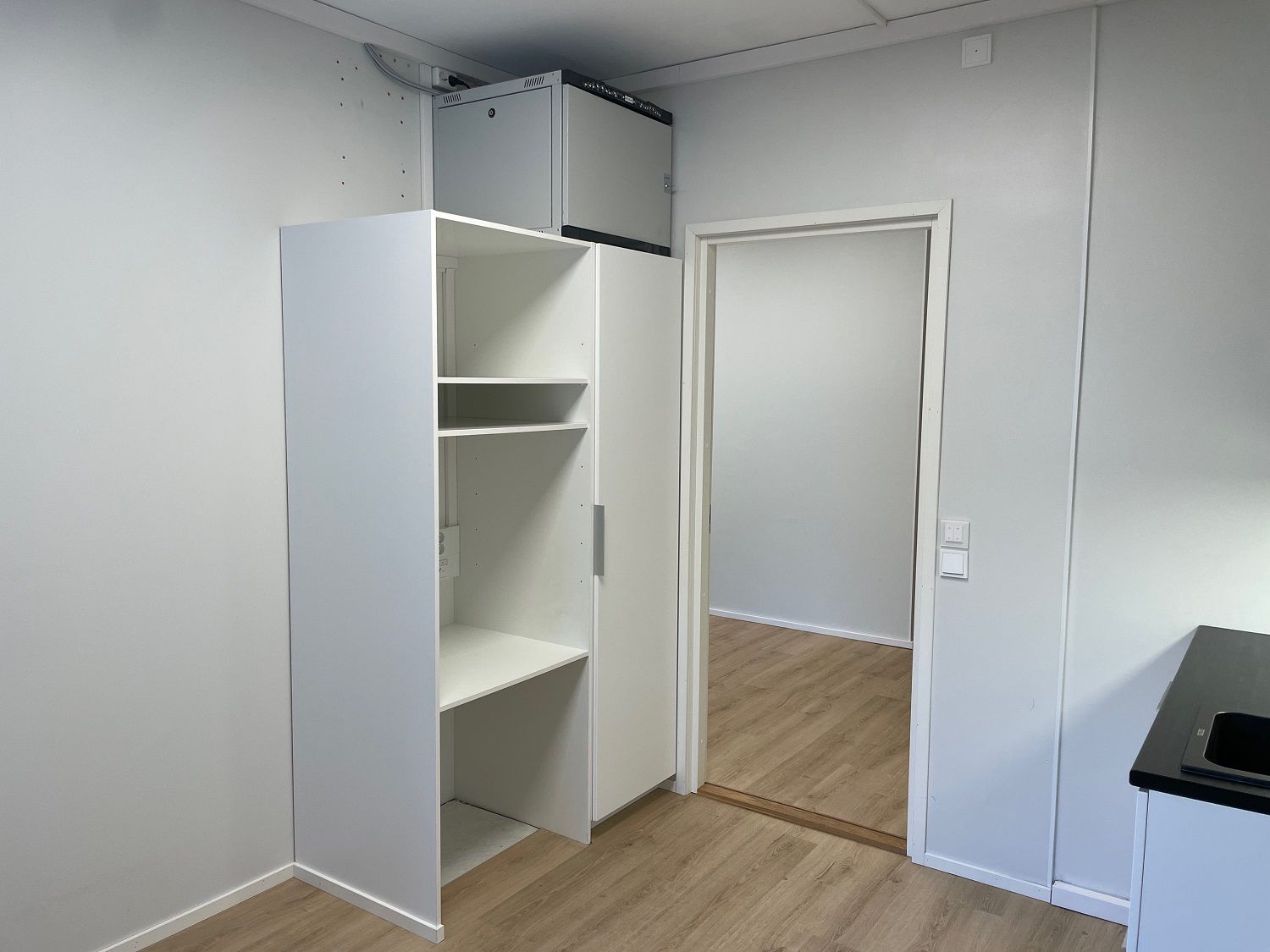 Huoneistossa on 1 toimistohuone lasiseinällä ja liukuovella sekä pienempi huone minikeittiövarustuksella.