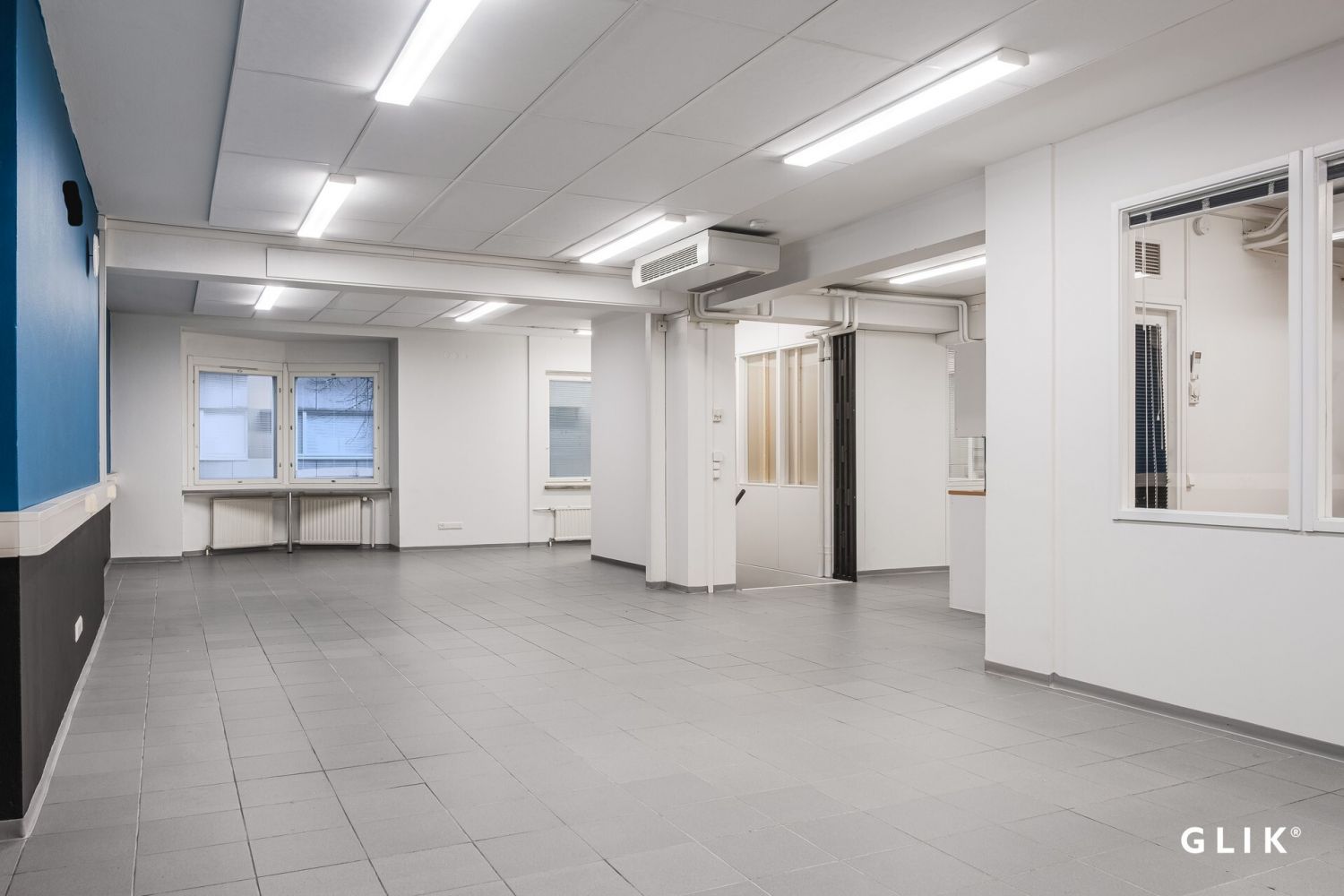 Aivan Tampereen ydinkeskustassa, vilkkaalla paikalla monipuolinen toimitila. Huoneisto on noin 50 metriä Hämeenkadulta. Tilat jakautuvat kolmeen kerrokseen. Katutasossa 77m2, kellarikerroksessa huonekorkeaa työskentely ja varastotilaa 128m2 ja yläkerrassa avointatilaa ja muutama erillinen huone sekä keittiö 125m2.