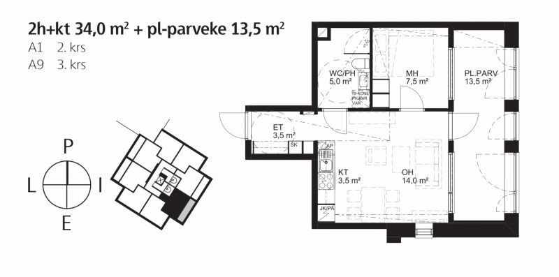 Parveke on hulppea 13,5m2 puolilämmin, ja siinä on lämmitys, joka tulee taloyhtiön puolesta.