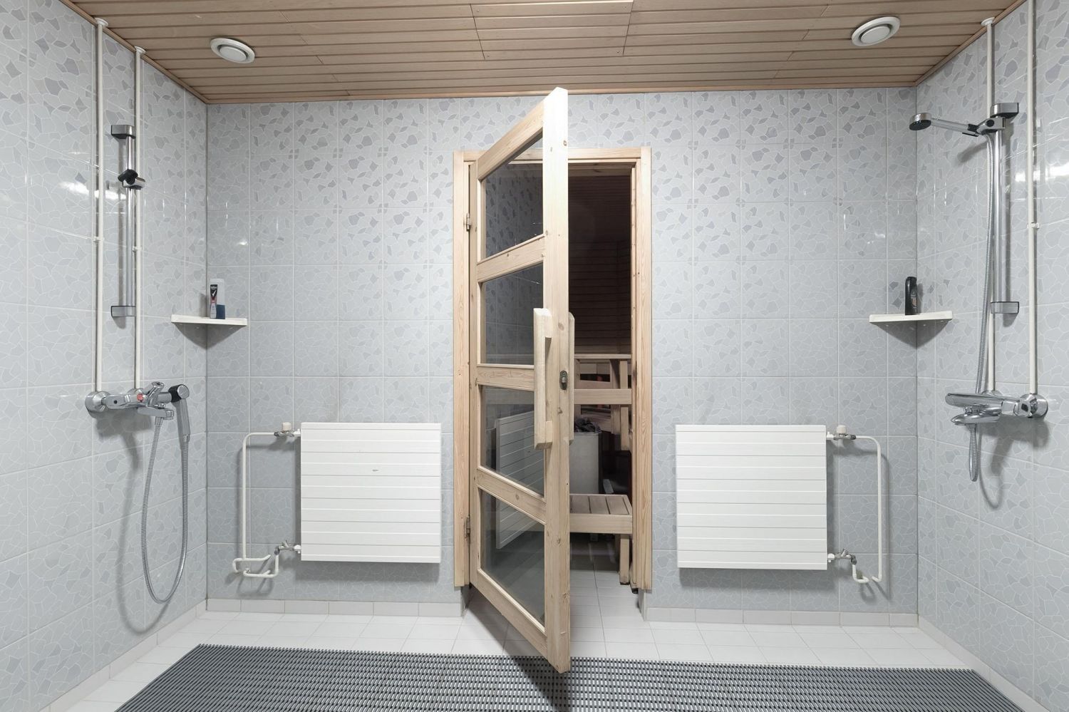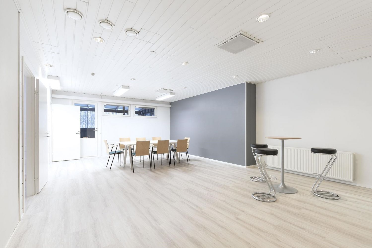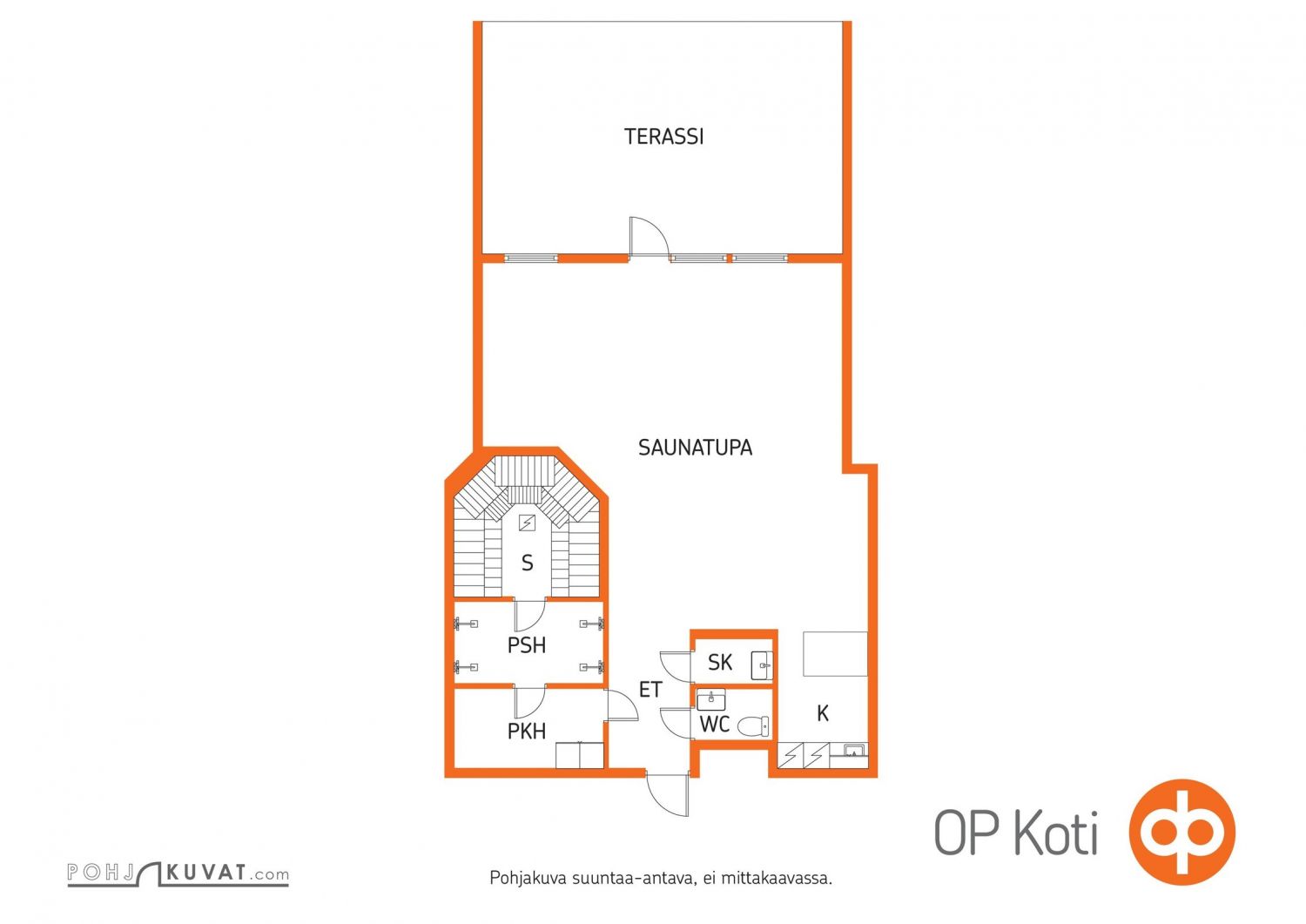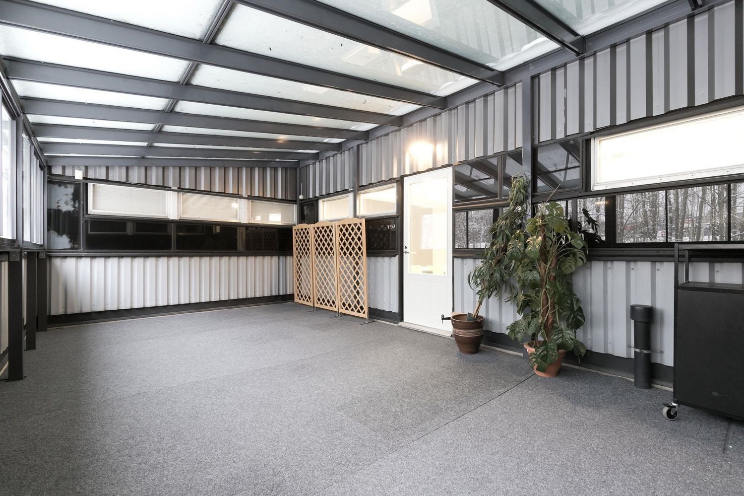 Myytävä huoneisto koostuu suuresta, valoisasta tilasta, jonka voisi tarvittaessa jakaa osiin. Tilassa on myös kaksi erillistä huonetta ja pieni keittiösyvennys. Saunaosastolla on pukuhuone, reilunkokoinen kylpyhuone kahdella suihkulla ja sauna, johon mahtuu isompikin porukka löylyihin. Tilan kruunaa hulppean kokoinen, katettu terassi, joka vastaa kesällä yhtä ylimääräistä huonetta.