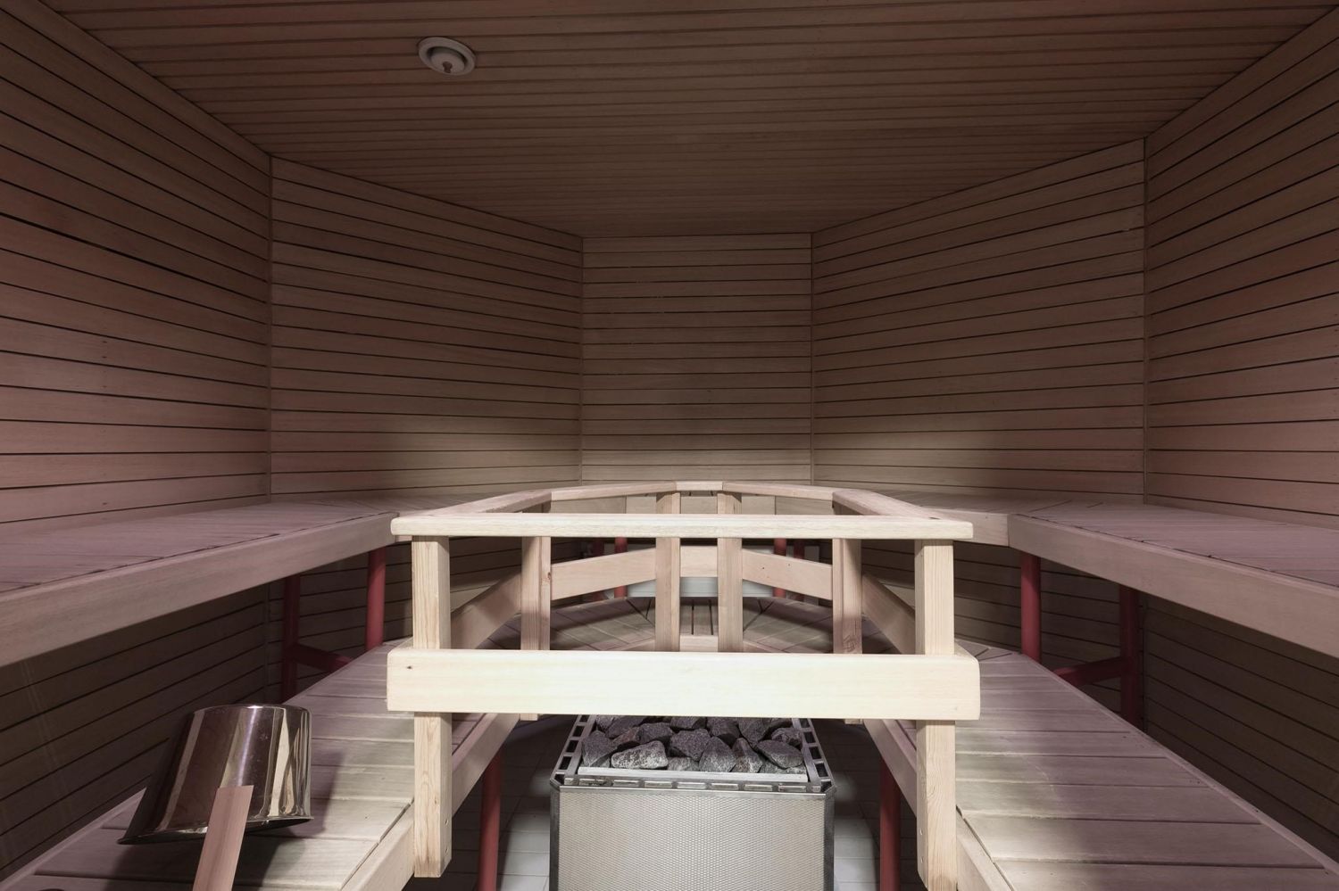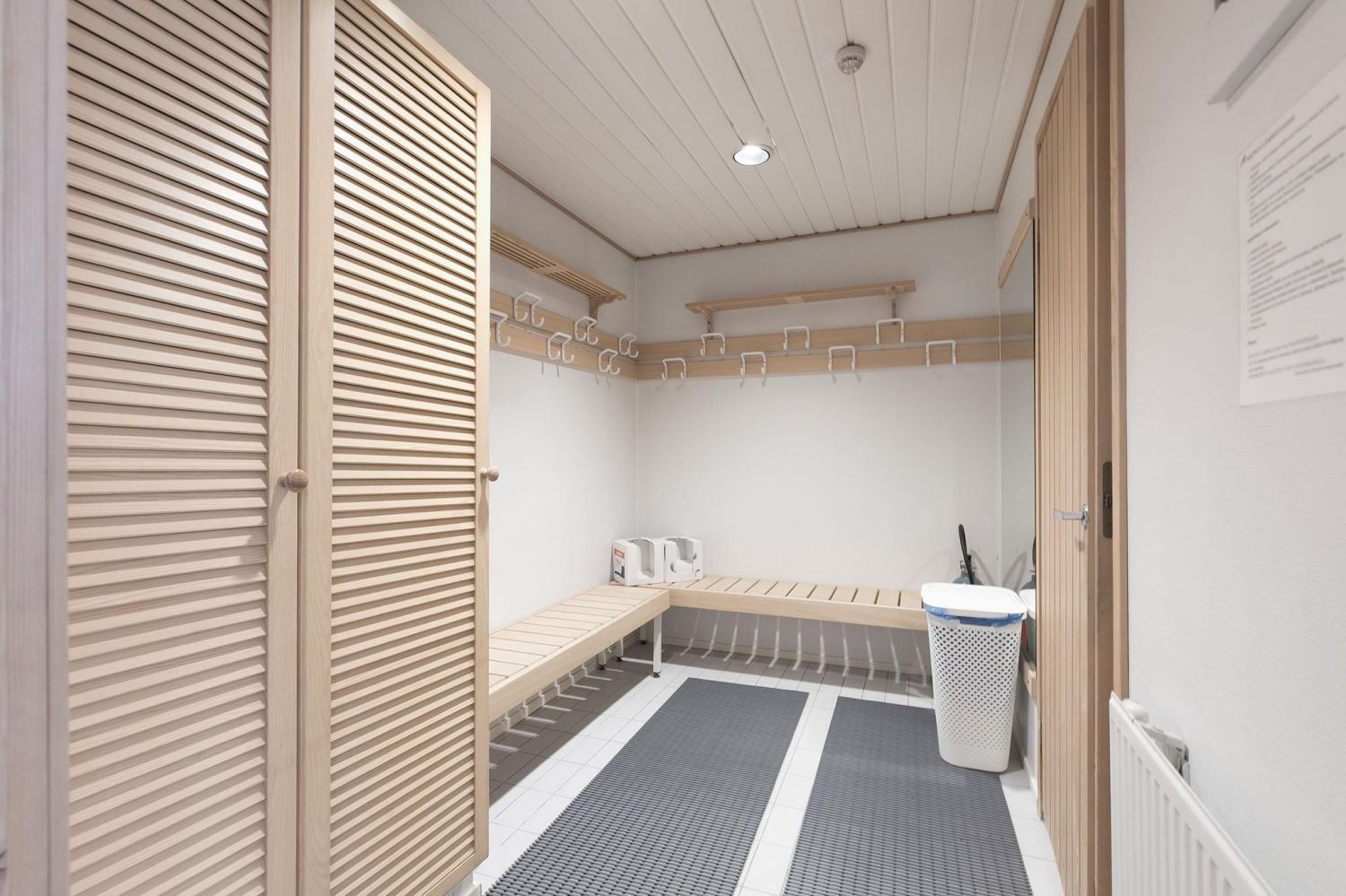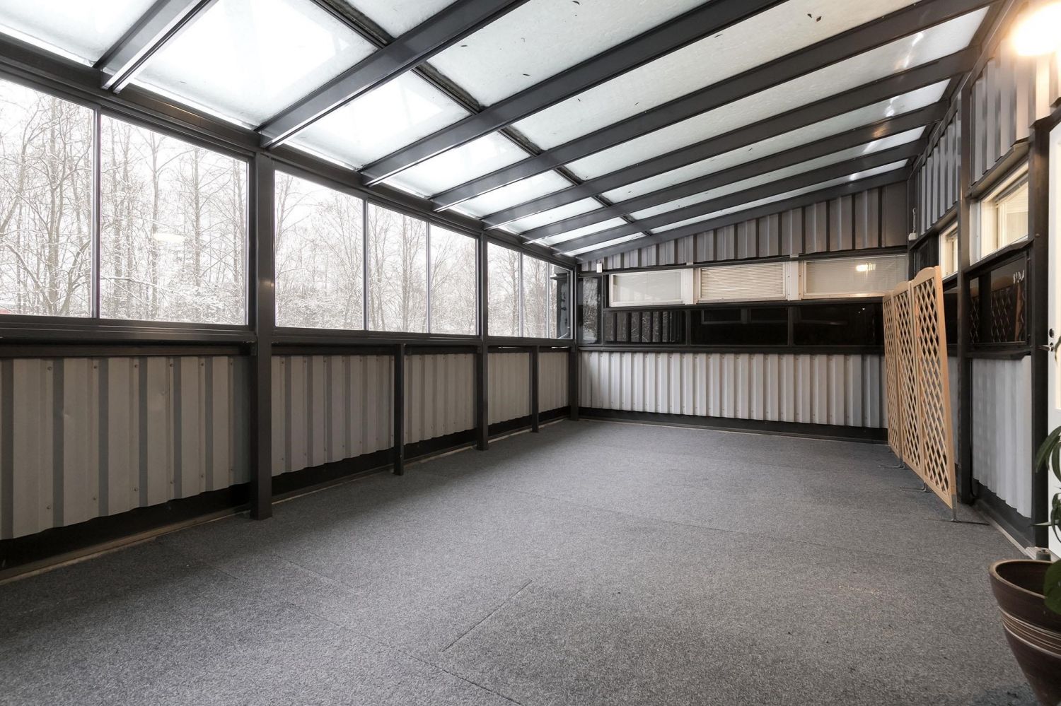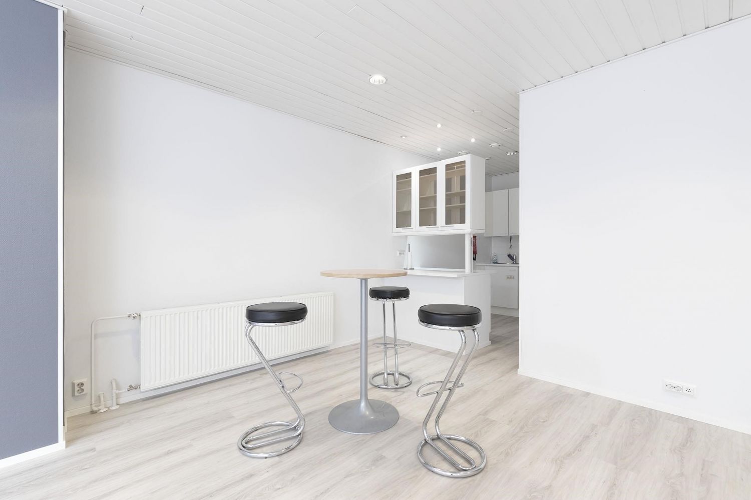 Myytävä huoneisto koostuu suuresta, valoisasta tilasta, jonka voisi tarvittaessa jakaa osiin. Tilassa on myös kaksi erillistä huonetta ja pieni keittiösyvennys. Saunaosastolla on pukuhuone, reilunkokoinen kylpyhuone kahdella suihkulla ja sauna, johon mahtuu isompikin porukka löylyihin. Tilan kruunaa hulppean kokoinen, katettu terassi, joka vastaa kesällä yhtä ylimääräistä huonetta.