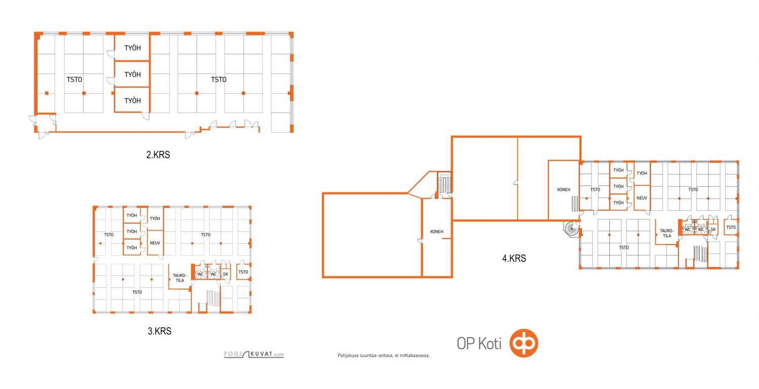 Vuokrattavia tiloja on tarjolla kolmessa kerroksessa asiakkaan tarpeen mukaan aina 1200 neliöön saakka. Tilat koostuvat avokonttoritiloista, erillisistä neuvottelu- ja toimistohuoneista ja wc-tiloista. Tilat ovat jaettavissa erilaisiksi kokonaisuuksiksi.
