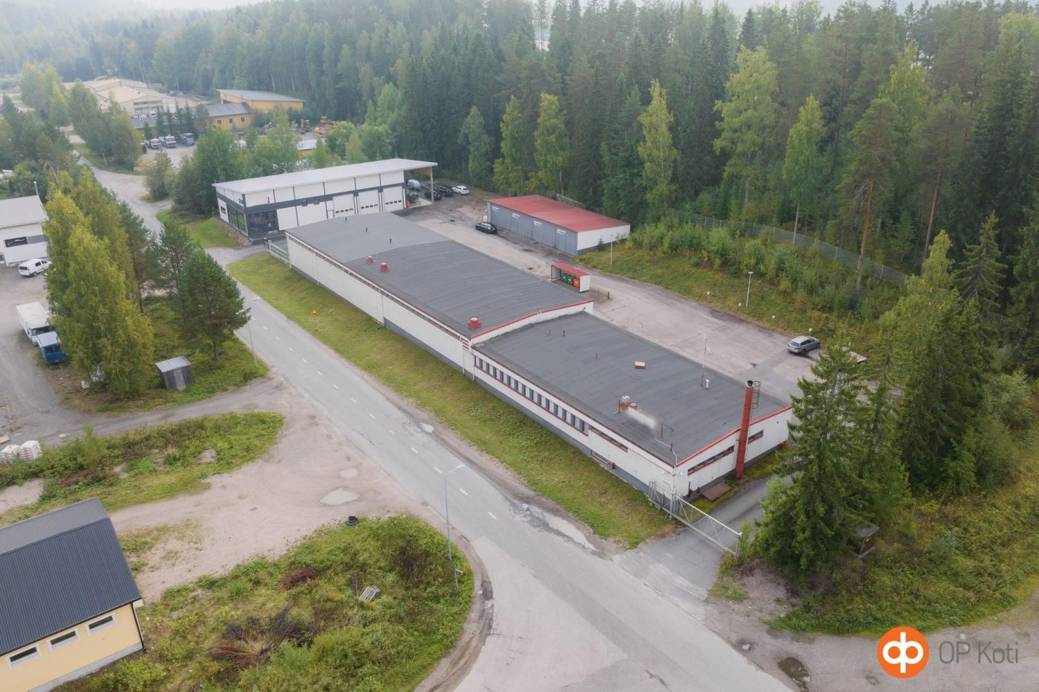 myymälä-korjaamorakennus (valm. 2017) 513/625 m2 sekä v. 1978 valmistunut toimitilarakennus n.1200 m2.