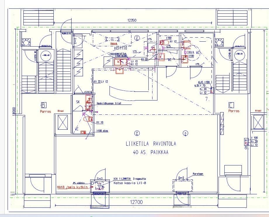 Tilassa keittiön lisäksi ravintolasali/liiketila, asiakas wc.t. Sovi esittely!