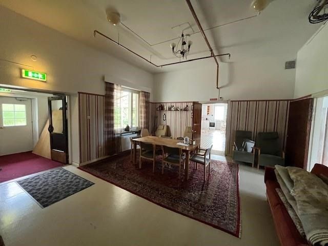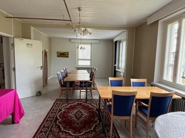 Toisessa kerroksessa erillinen 2h,k ja 4h,k sekä oheistiloja. Kellarikerroksessa 5 asuinhuonetta, oleskeluhuone, kuntohuone, saunatilat ja pesutupa. Rakennuksessa on öljylämmitys. Tiloihin tehty sprinklausjärjestelmä. Oma hehtaarin tontti, jossa hedelmäpuita, nurmikkoa. Uimaranta myös kävelymatkan päässä. Kuntokartoitus löytyy vuodelta 2018. Rakennuksessa on ollut toimintaa kuluvan vuoden kevääseen saakka. Sovi esittely, niin katsotaan paikanpäällä.