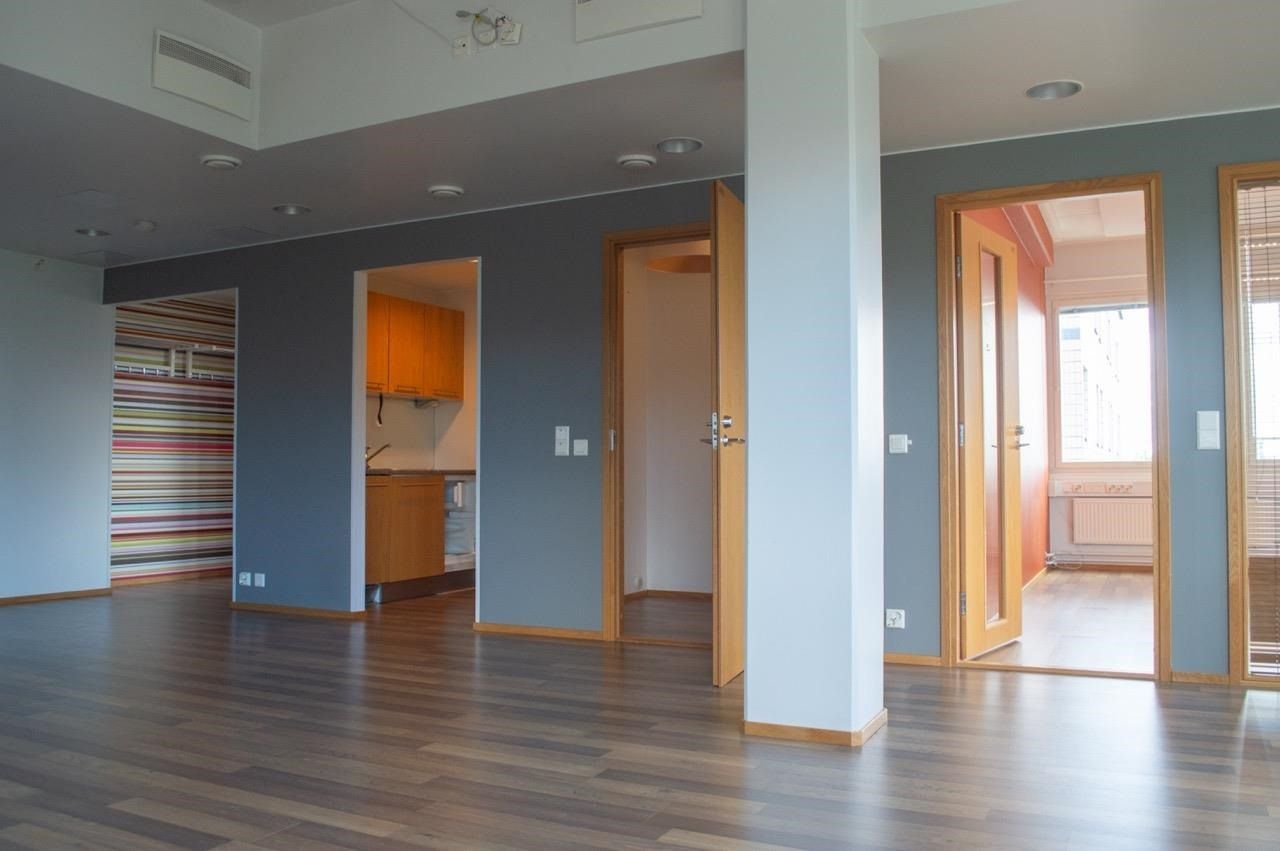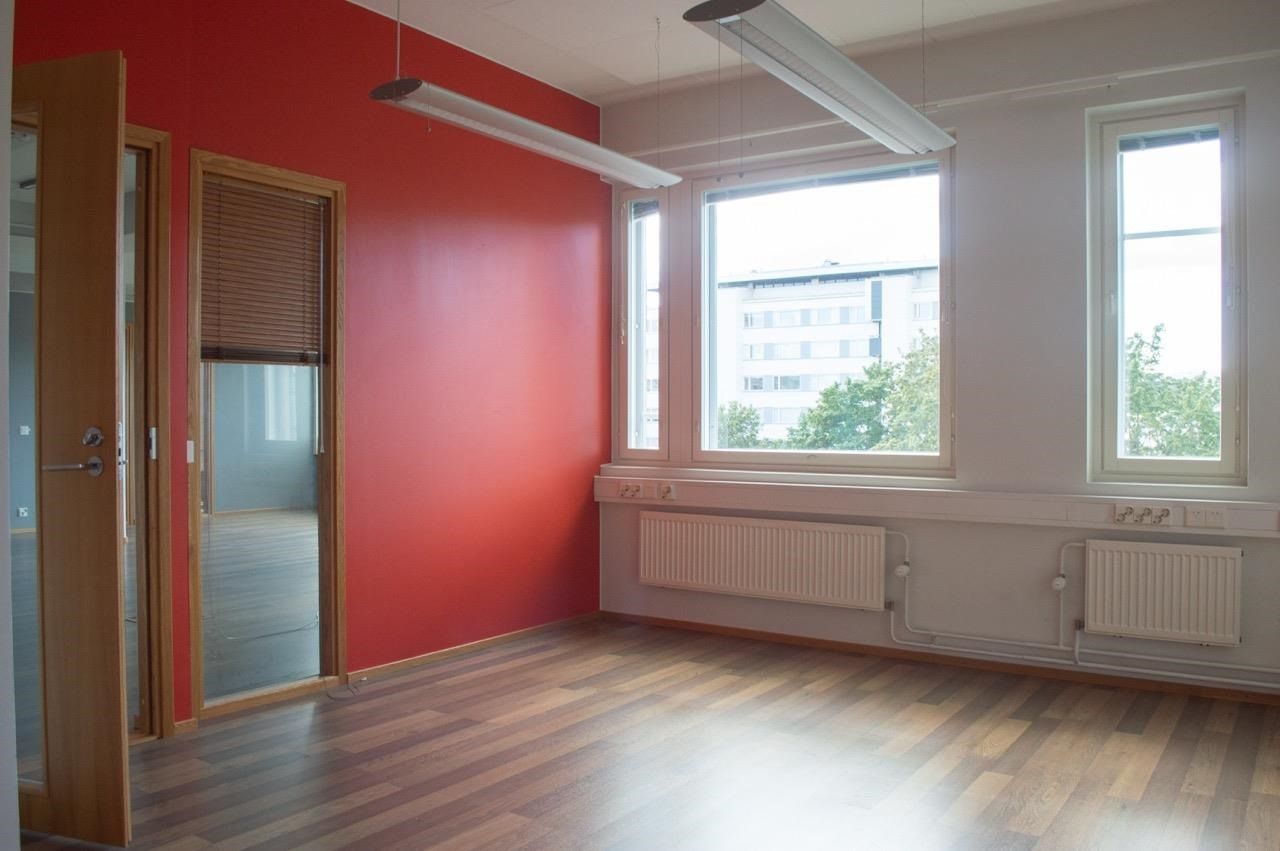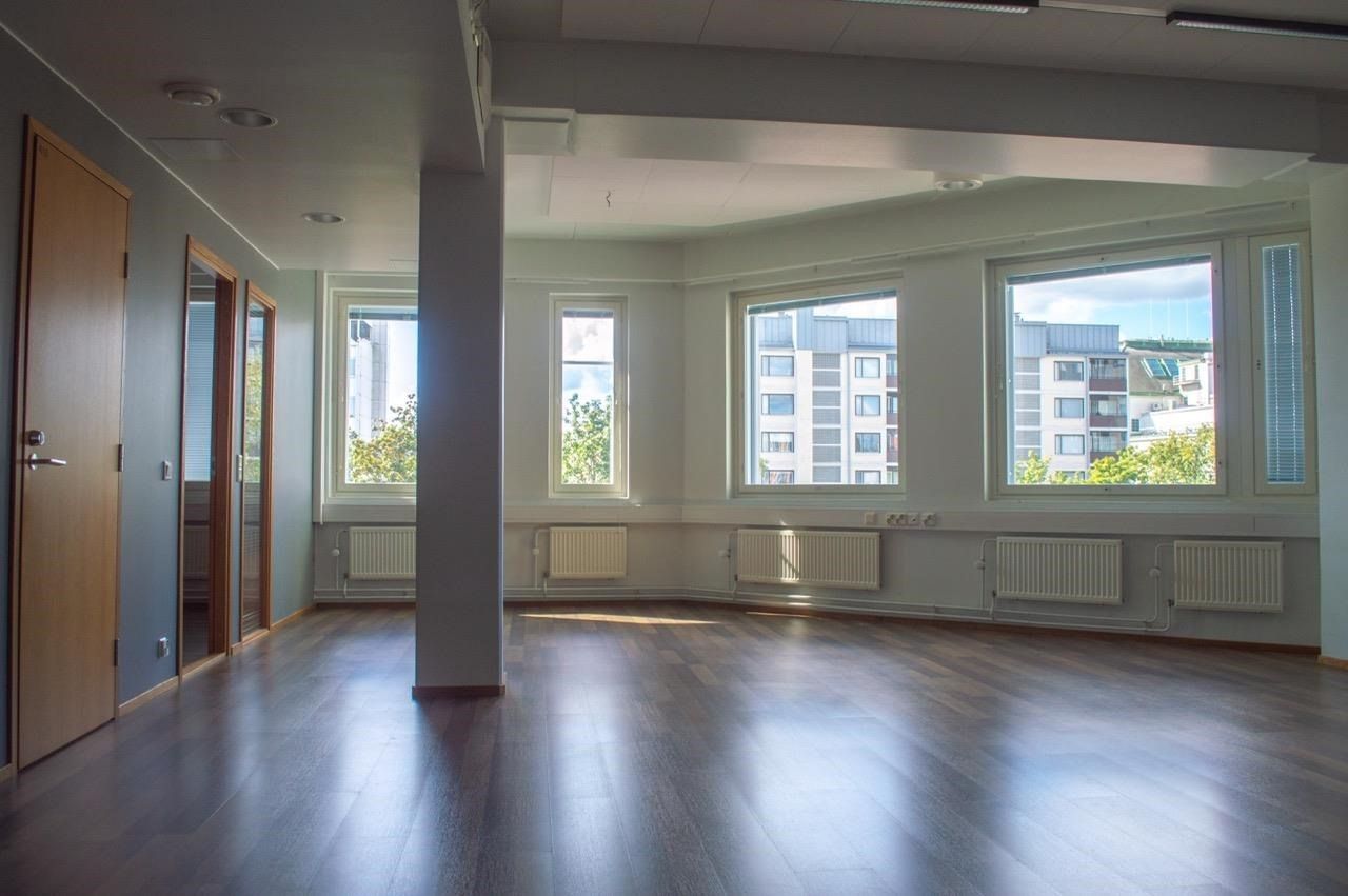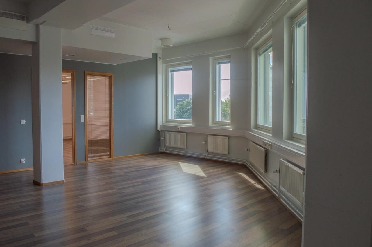 Nyt saatavilla edullisesti erittäin hyvällä pohjaratkaisulla siistikuntoinen toimistotila. Yhtenäinen avotila, lisäksi kolme erillistä toimistohuonetta, kaksi wc.tä. Hissitalon 4. kerroksessa. Huoneisto on valoisa ja toimiva! Vapautuu sopimuksen mukaan.