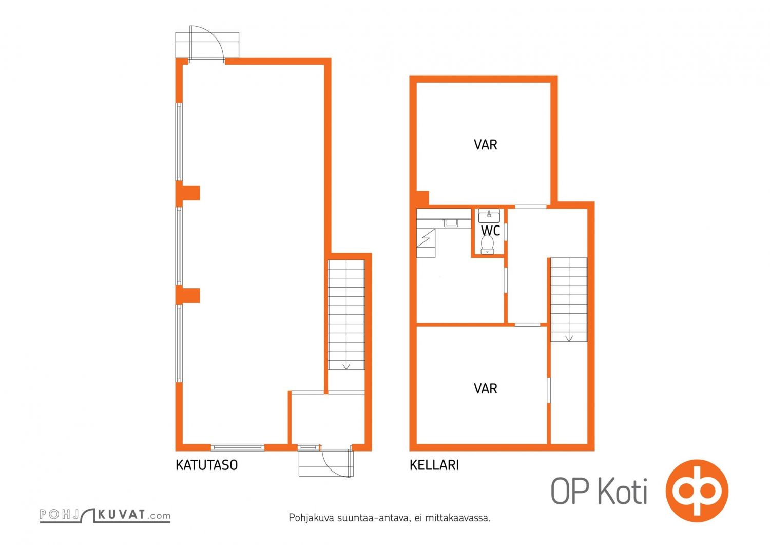 Katutasossa 54 m2 liiketila ja kellarissa sosiaalitilat ja varasto 46 m2