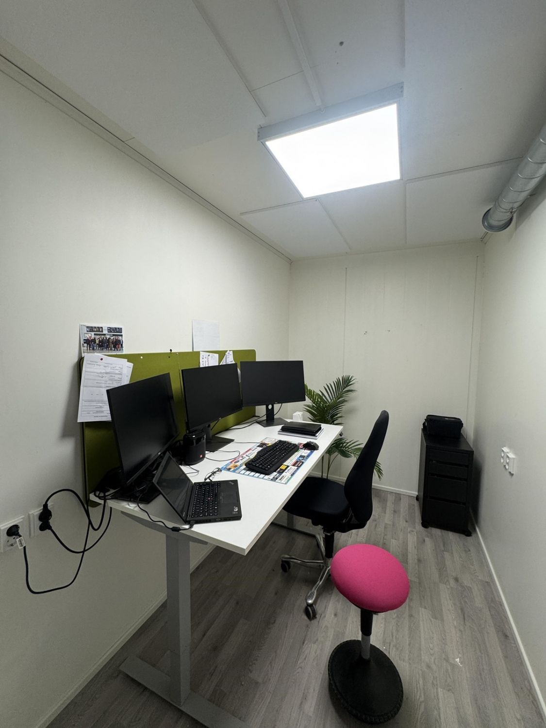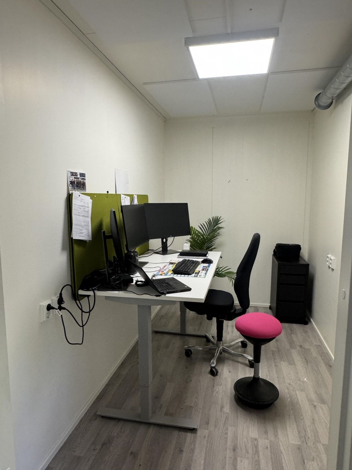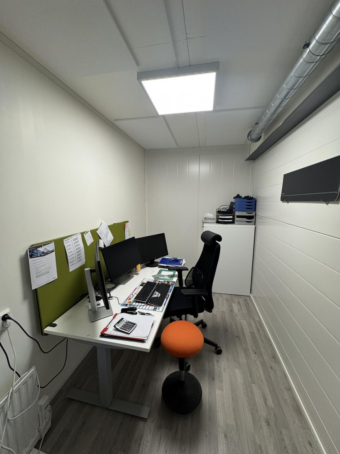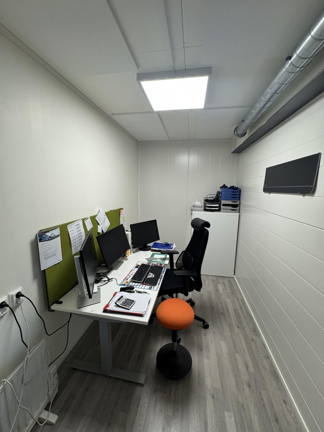 Muuramen Punasillan alueella v. 2015 valmistunut siistikuntoinen hallitila, jossa yhtenäistä hallitilaa (yhtiöjärjestyksen mukaan liiketila 115m2). Lisäksi 2.kerrokseen on rakennettu jälkikäteen 3 toimistotilaa, neuvottelutila sekä minikeittiö, yht. n. 52m2. Rakennusluokitukseltaan rakennus on puolilämmin tila. Yhtiössä maalämpö, lisäksi ilmalämpöpumppu. Tästä hyvät ja toimivat tilat yrityksellesi. Sovi esittely!