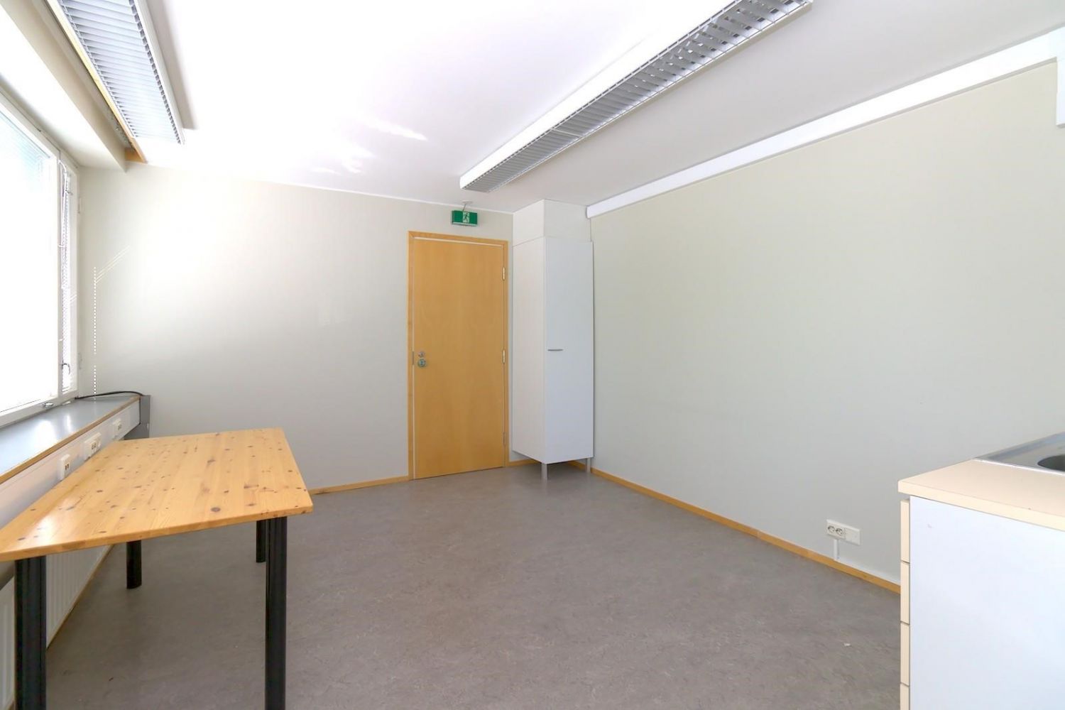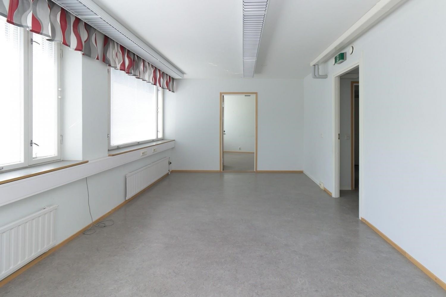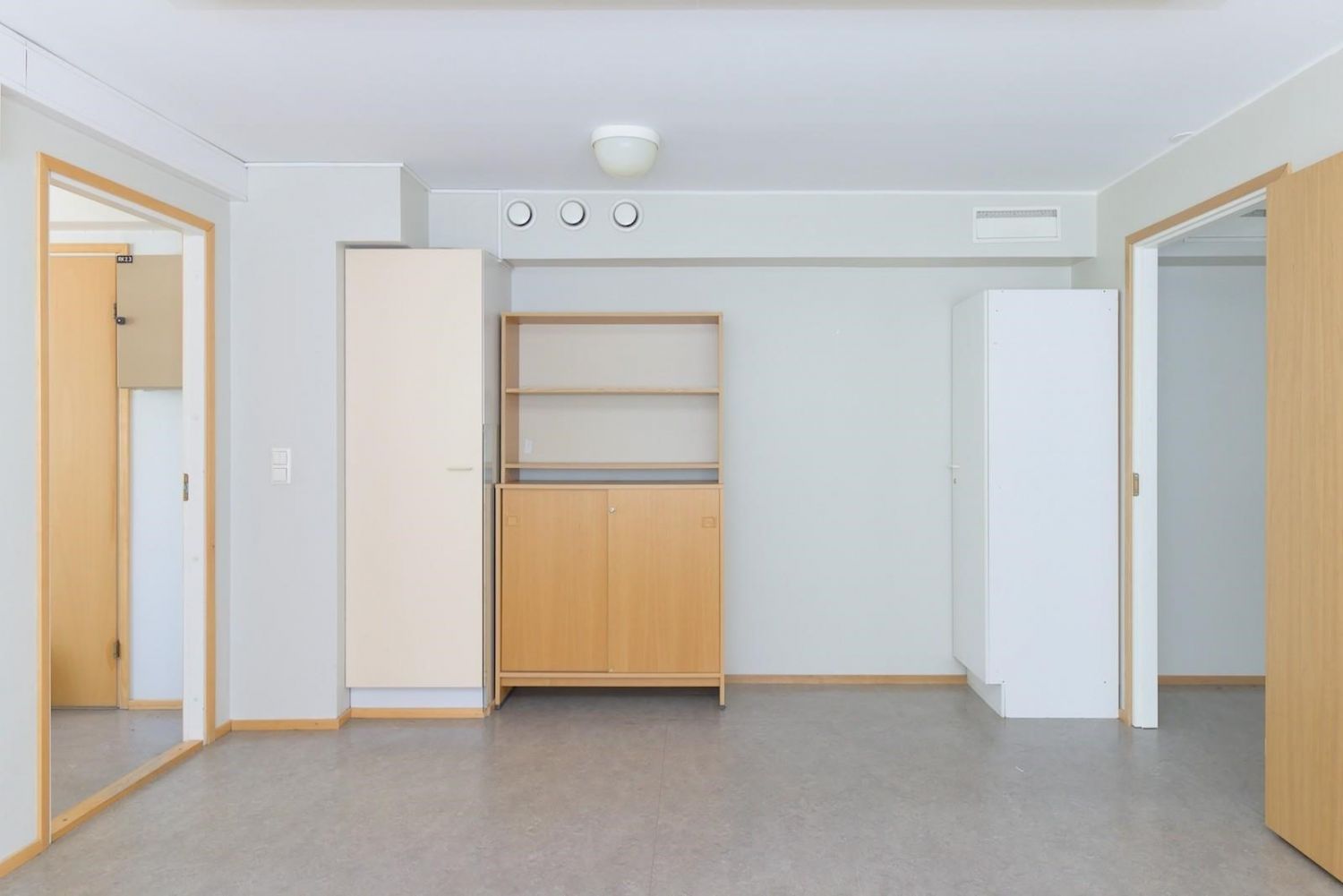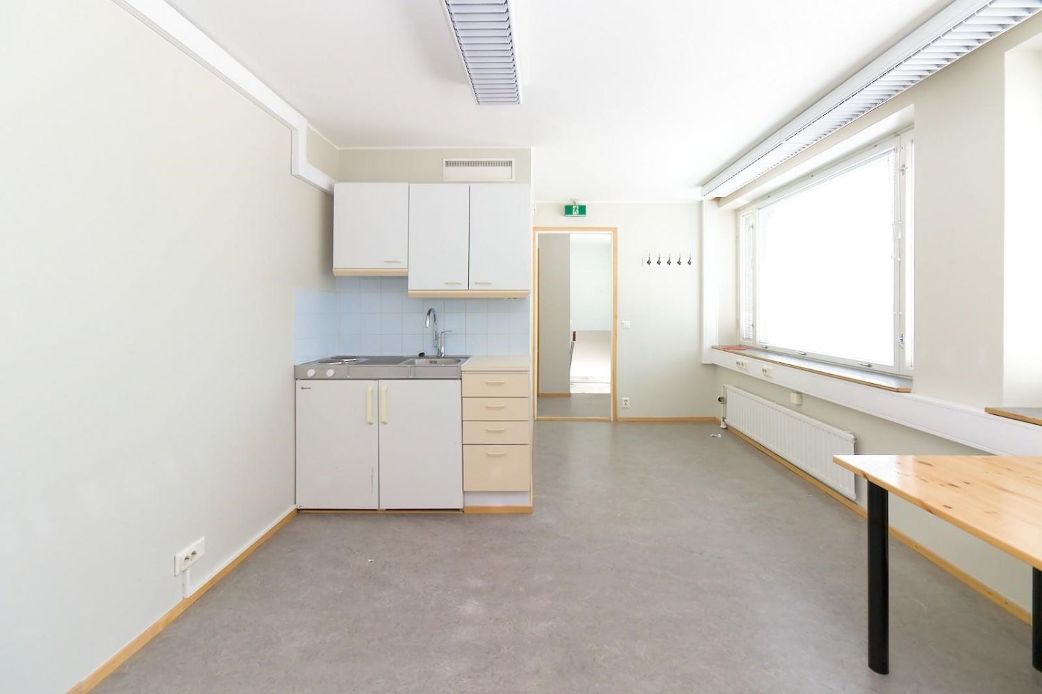 Huoneiden välillä on ovi ja molemmista käynti käytävään.