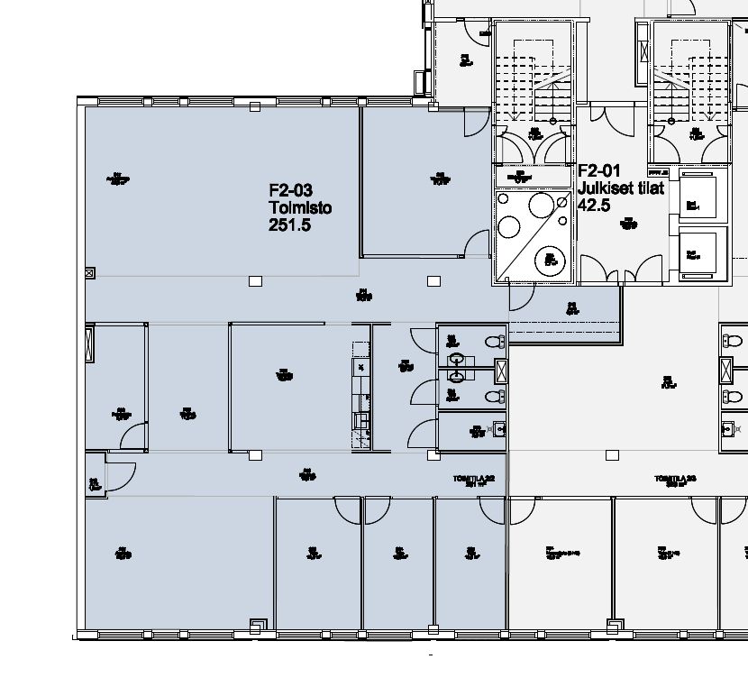 Tilan vuokrattava pinta-ala on 251,2 m² + jyvitetyt sosiaalitilat 3 m², yhteensä n. 254 m².
