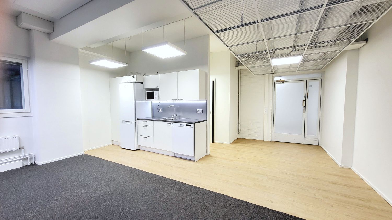 Vuokrataan 2.kerroksessa remontoittu toimistotila 177m2 Haagan Toimistoristikosta. Huoneistossa on avotila, pieni neuvottelutila/työhuone, pieni varastohuone, avokeittiö-/taukotila ja 2 wc. Huoneisto sopii hyvin bybriditilaksi tai showroomiksi ja on muokattavissa vuokralaisen tarpeiden mukaan.
