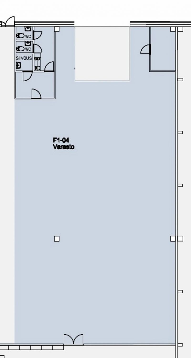 Vuokrattavana sisään ajettava varastotila, jonka vapaa korkeus on n. 6 m. Varastoon on yksi nosto-ovi, jonka leveys on n. 4,90 m ja korkeus n. 4,60 m. Tilassa on lattiakaivo.