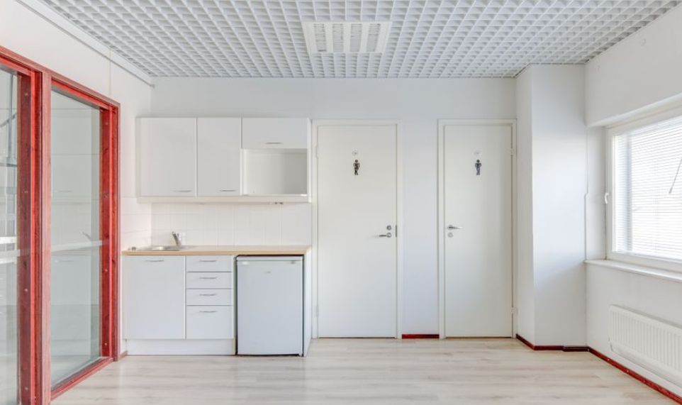 Tilakokonaisuuteen kuuluu myös toimistotilaa, oma keittiö ja wc-tilat.