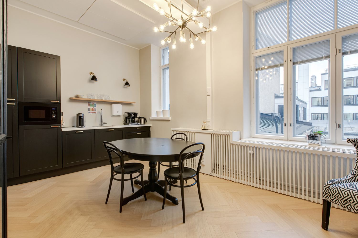 Korkeatasoinen modernisoitu arvorakennus, jossa on säilytetty huoneiden yli 3 metrinen korkeus ja upeat kaari-ikkunat. Rakennus on edustavassa kunnossa vasta valmistuneen julkisivuremontin jäljiltä.