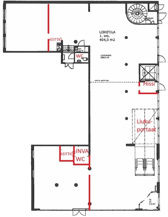 Kulku 2. kerrokseen liukuportailla, hissillä tai rappusia. Useampi ulko-ovi ja sisäänkäyntimahdollisuuus myös rappukäytävän kautta.