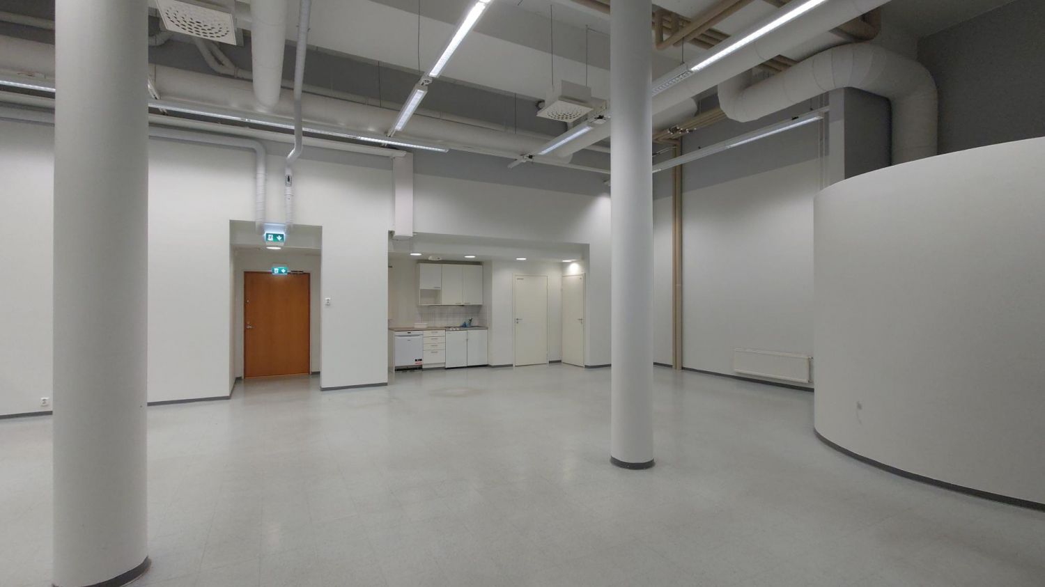 Kohteessa yhteensä 4 keittiötä ja wc:tä (kutakin 2 alakerrassa, 2 yläkerrassa). Tiloissa joitain kevyitä väliseiniä, pääosin avointa tilaa. Kellarikerroksessa lisäksi sosiaalitiloja (wc, suihku).