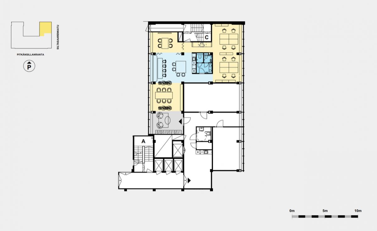 Pitkänsillanranta 3 sijaitsee Hakaniemen sydämessä, veden äärellä. Moderneista toimitiloista avautuvat kuvankauniit maisemat Siltavuorenrannan ja Eläintarhanlahden suuntaan. Toimitiloissa on koneellinen ilmanvaihto ja jäähdytetty tuloilma. Rakennuksesta löytyy kuntosali ja alueella on runsaasti ravintoloita. Kohteesta on hyvät kulkuyhteydet julkisilla kulkuvälineillä.