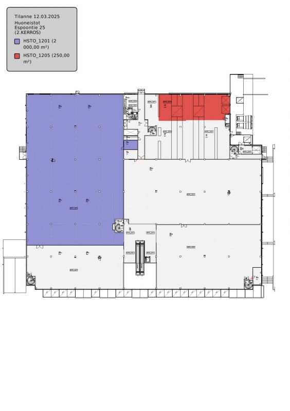 Toisen kerroksen vuokrattavaan 2495 m² liiketilaan kuuluu 2000 m² myymälätila, 250 m² varasto ja lisäksi yhteisiä jyvitettyjä tiloja n. 245 m²